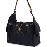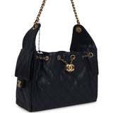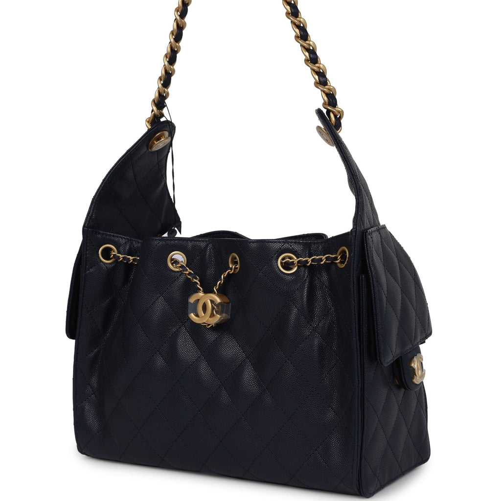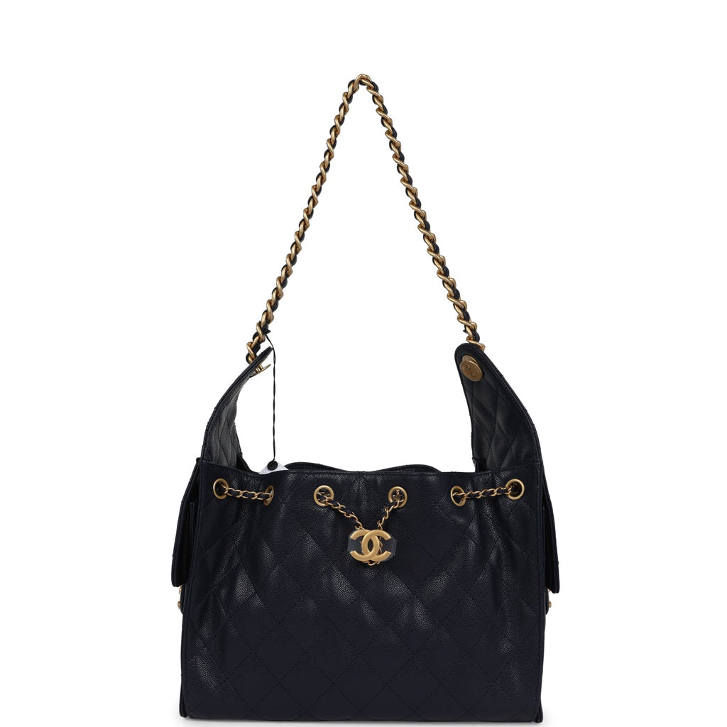 Chanel Small 25 Hobo Bag Dark Navy Caviar Antique Gold Hardware