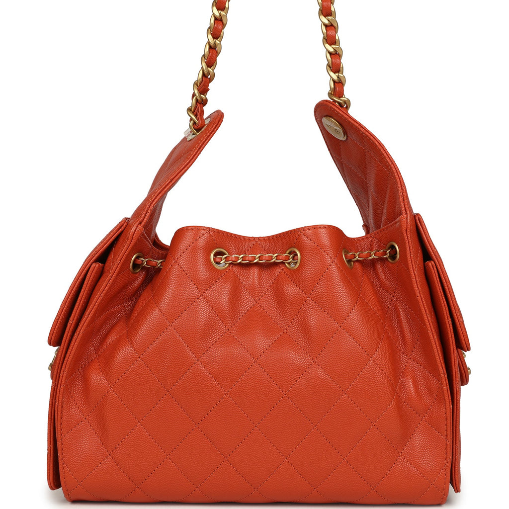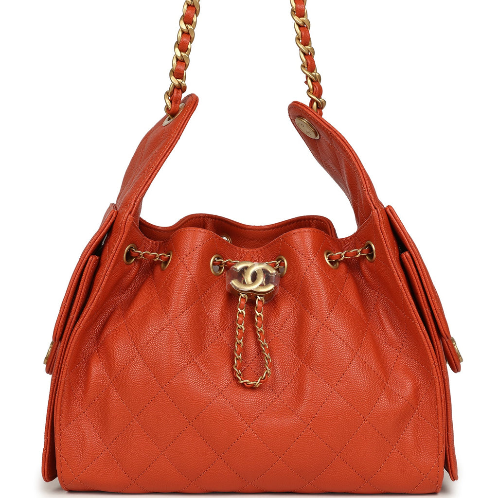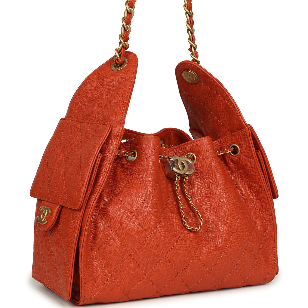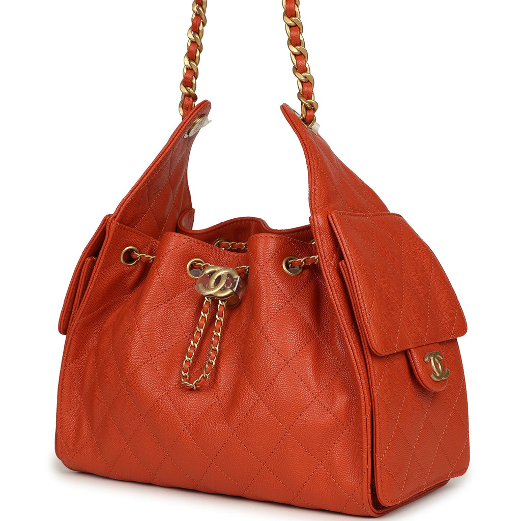 Chanel Small 25 Hobo Bag Dark Orange Caviar Antique Gold Hardware