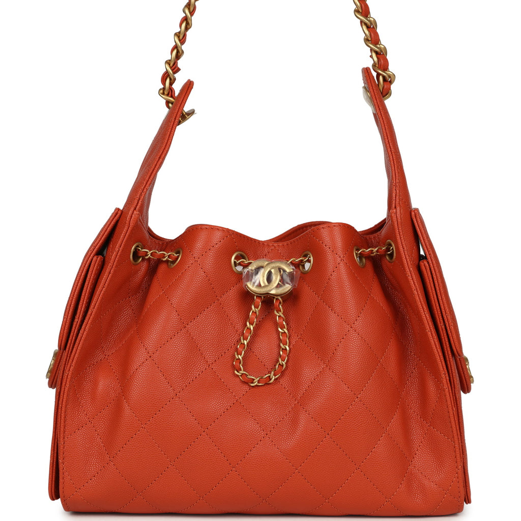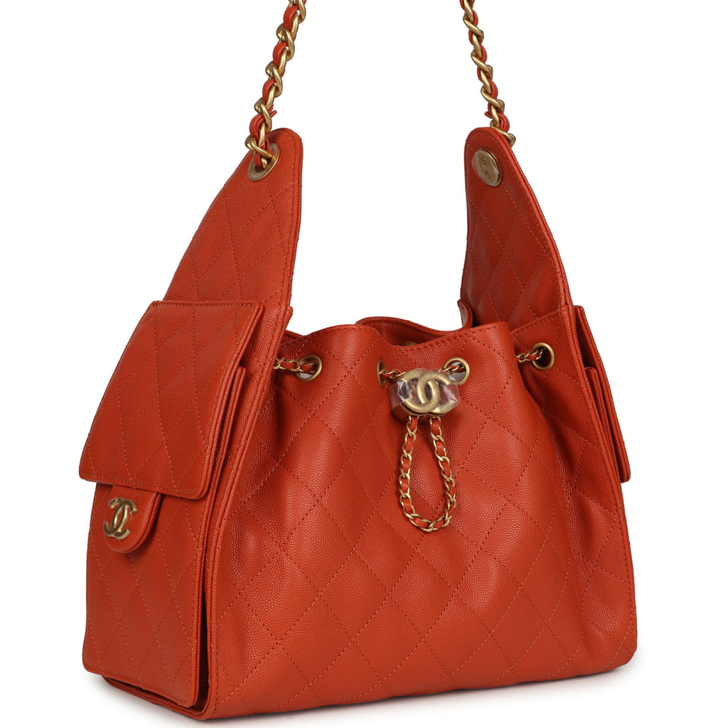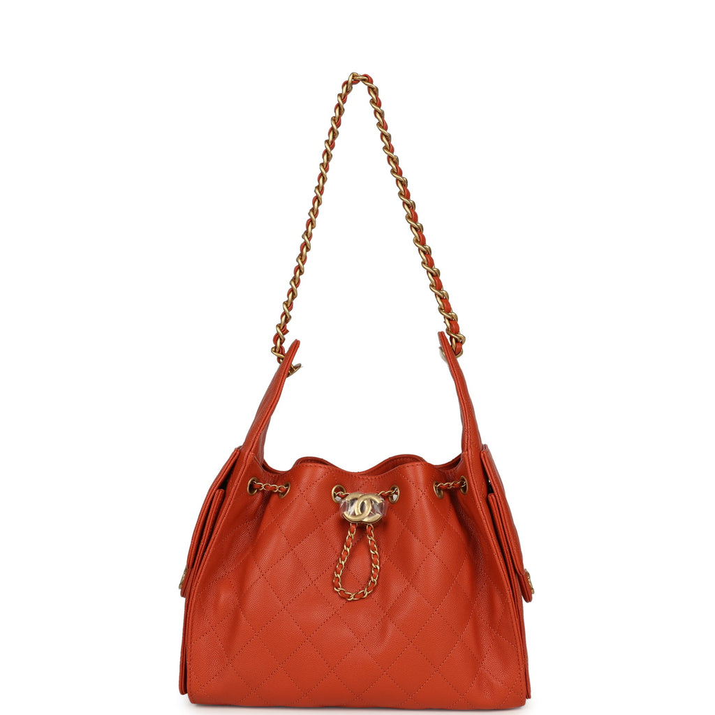 Chanel Small 25 Hobo Bag Dark Orange Caviar Antique Gold Hardware