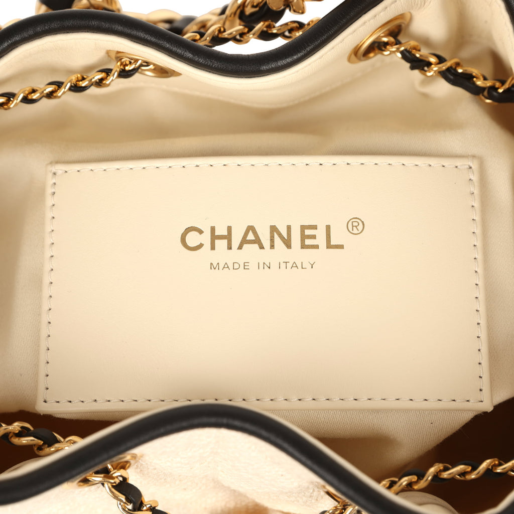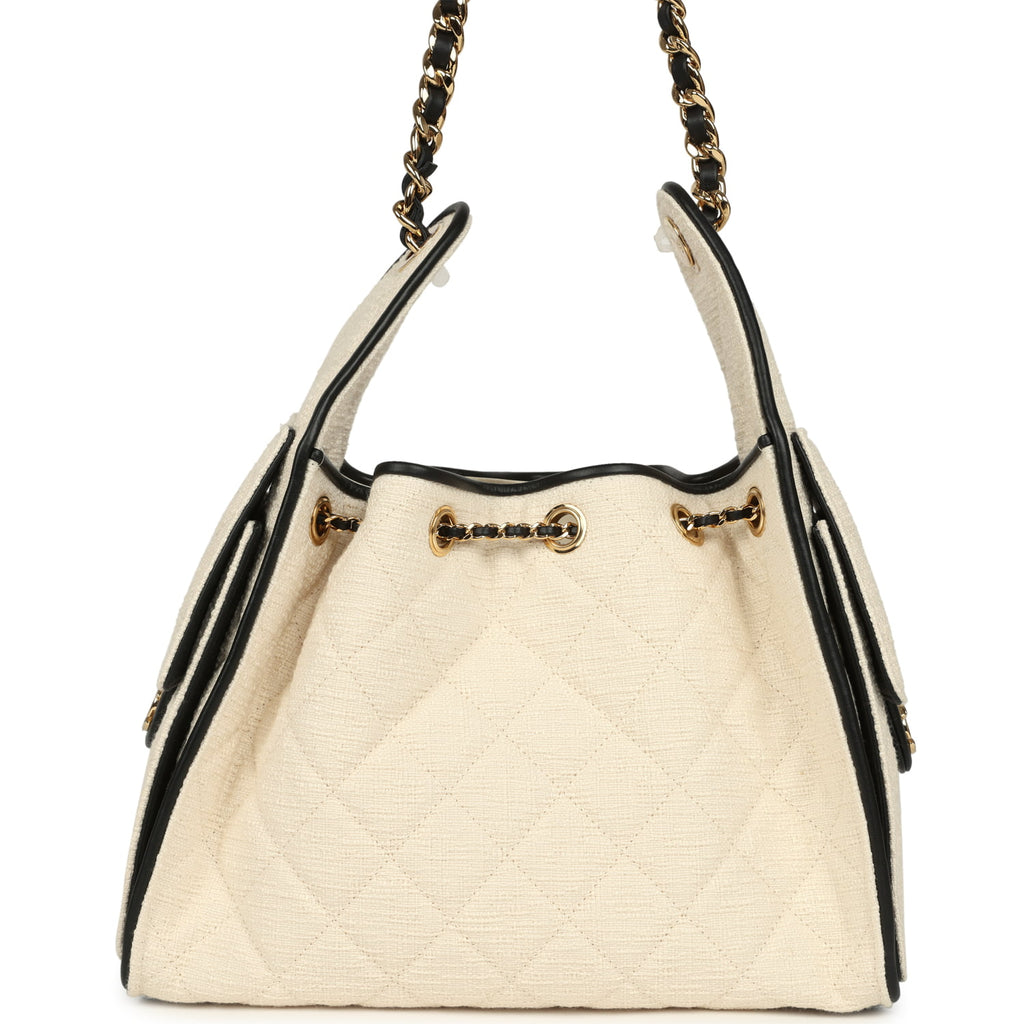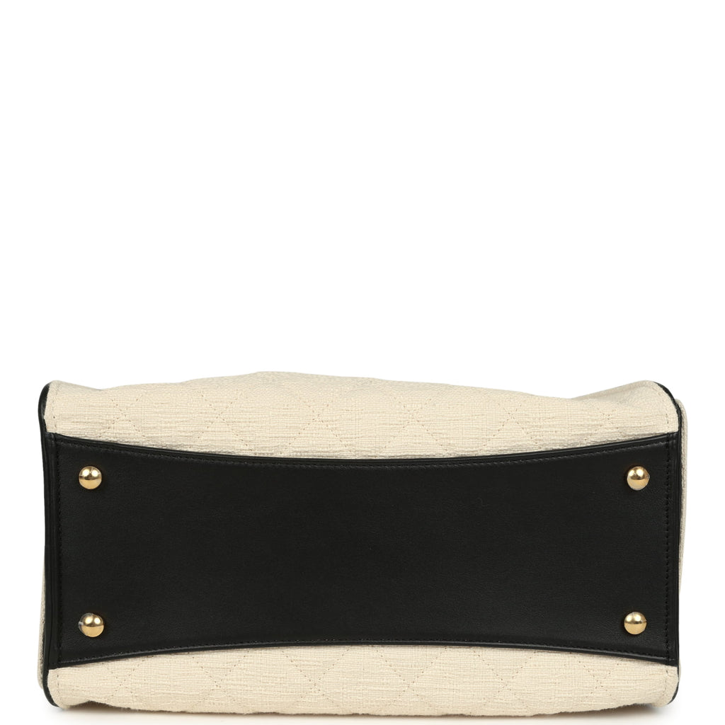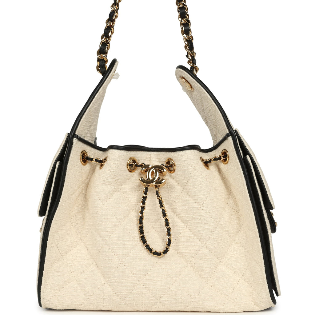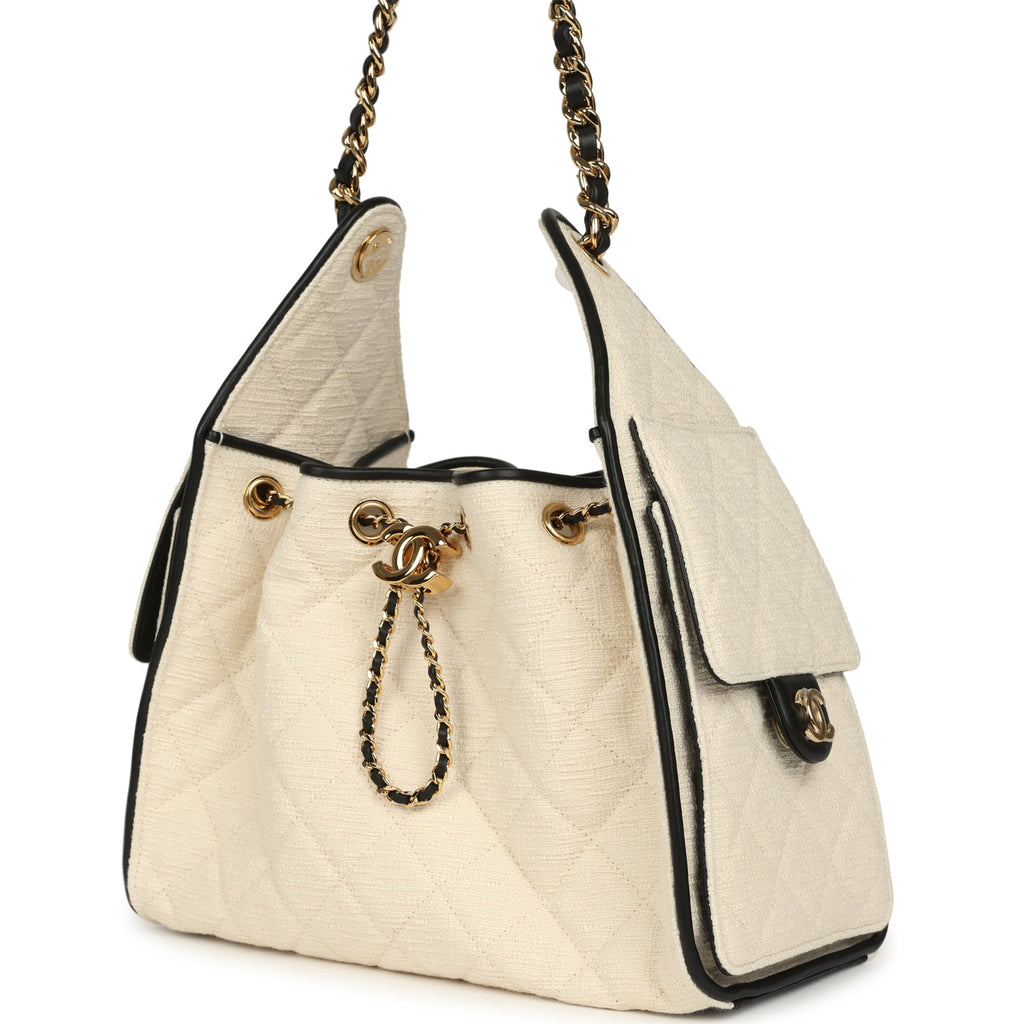 Chanel Small 25 Hobo Bag Ecru Canvas and Black Calfskin Gold Hardware