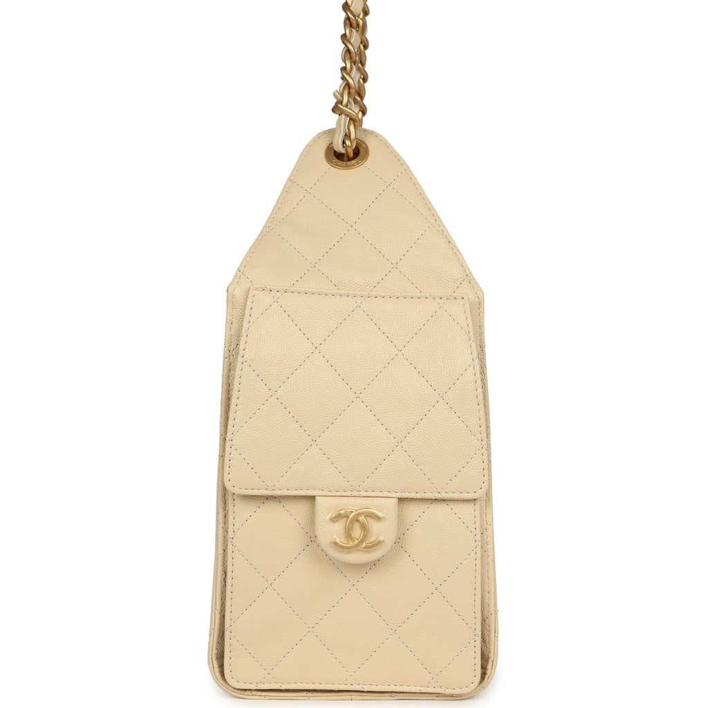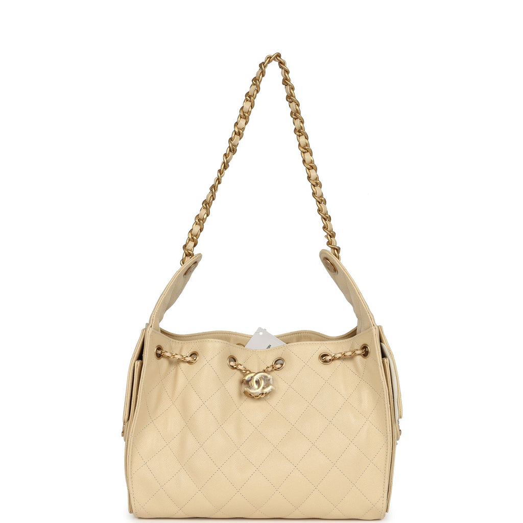 Chanel Small 25 Hobo Bag Light Beige Caviar Antique Gold Hardware