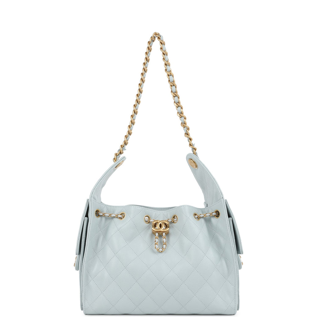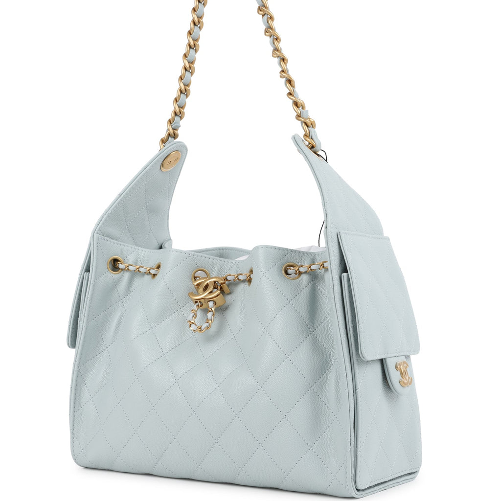 Chanel Small 25 Hobo Bag Light Blue Caviar Antique Gold Hardware