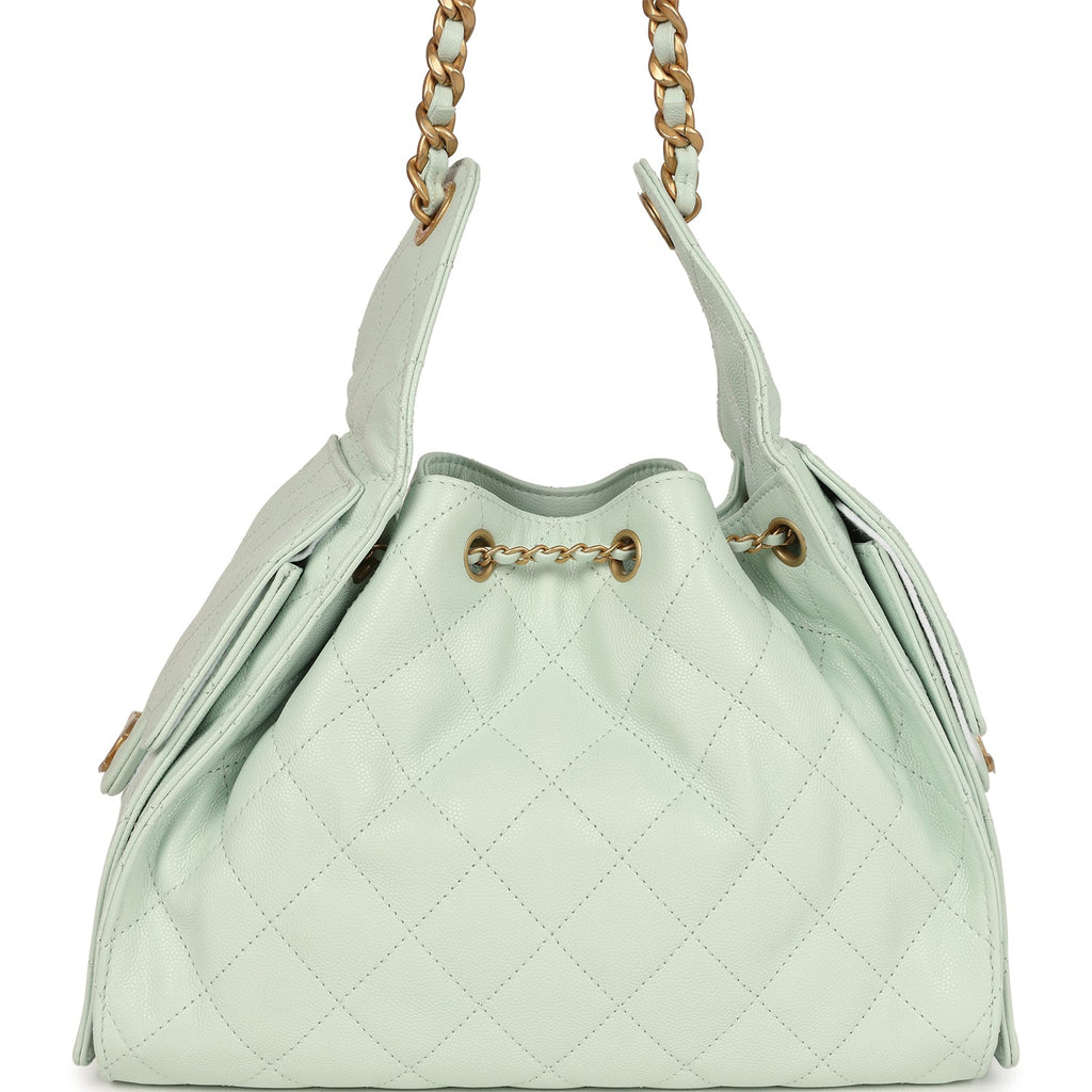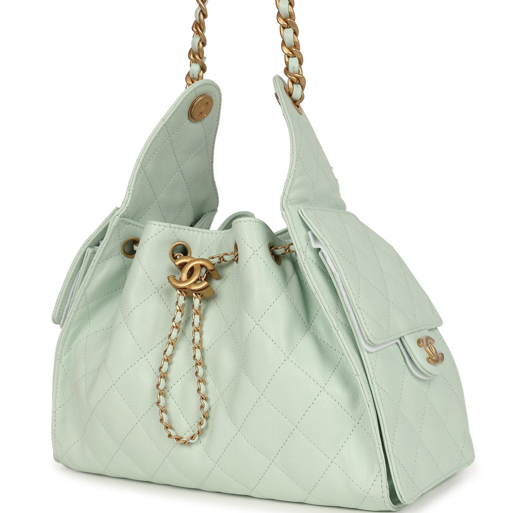 Chanel Small 25 Hobo Bag Light Green Caviar Antique Gold Hardware