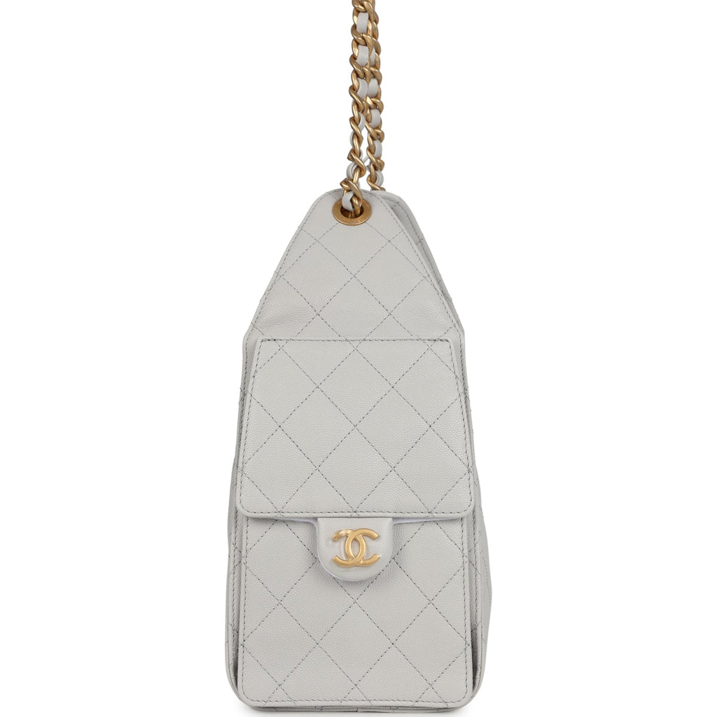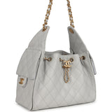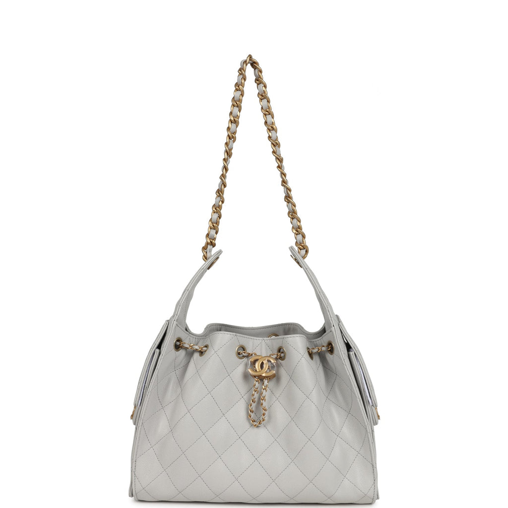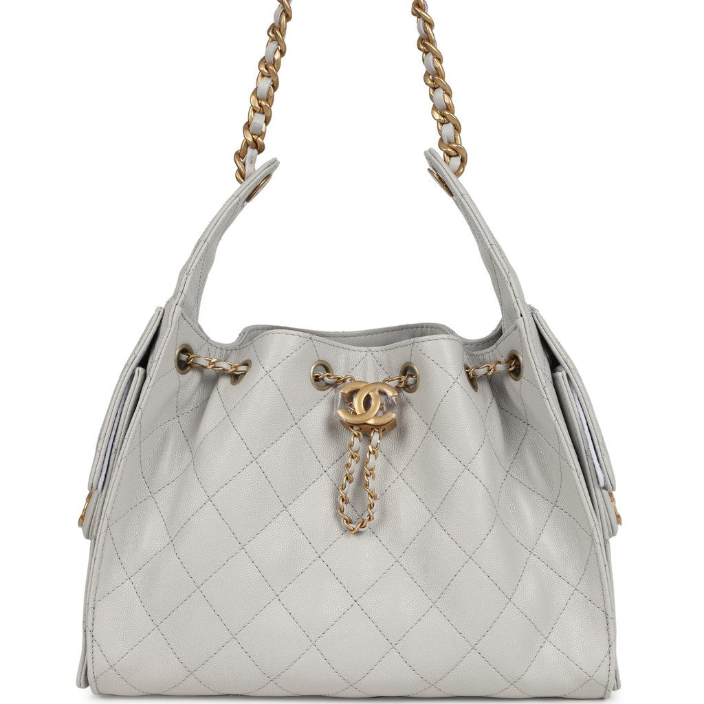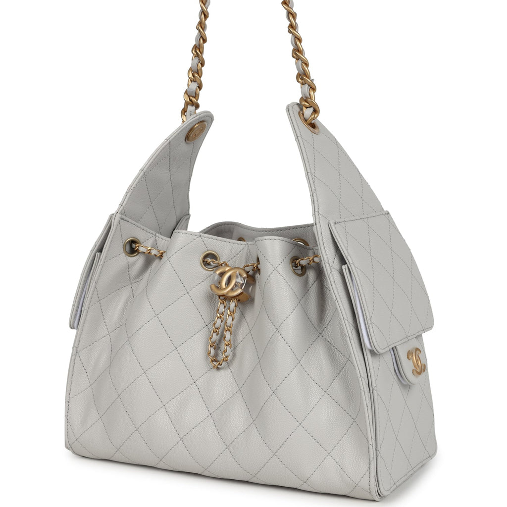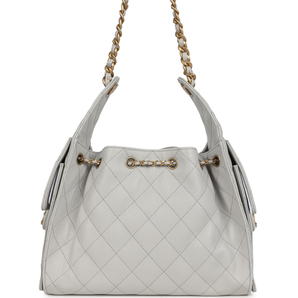Chanel Small 25 Hobo Bag Light Grey Caviar Antique Gold Hardware