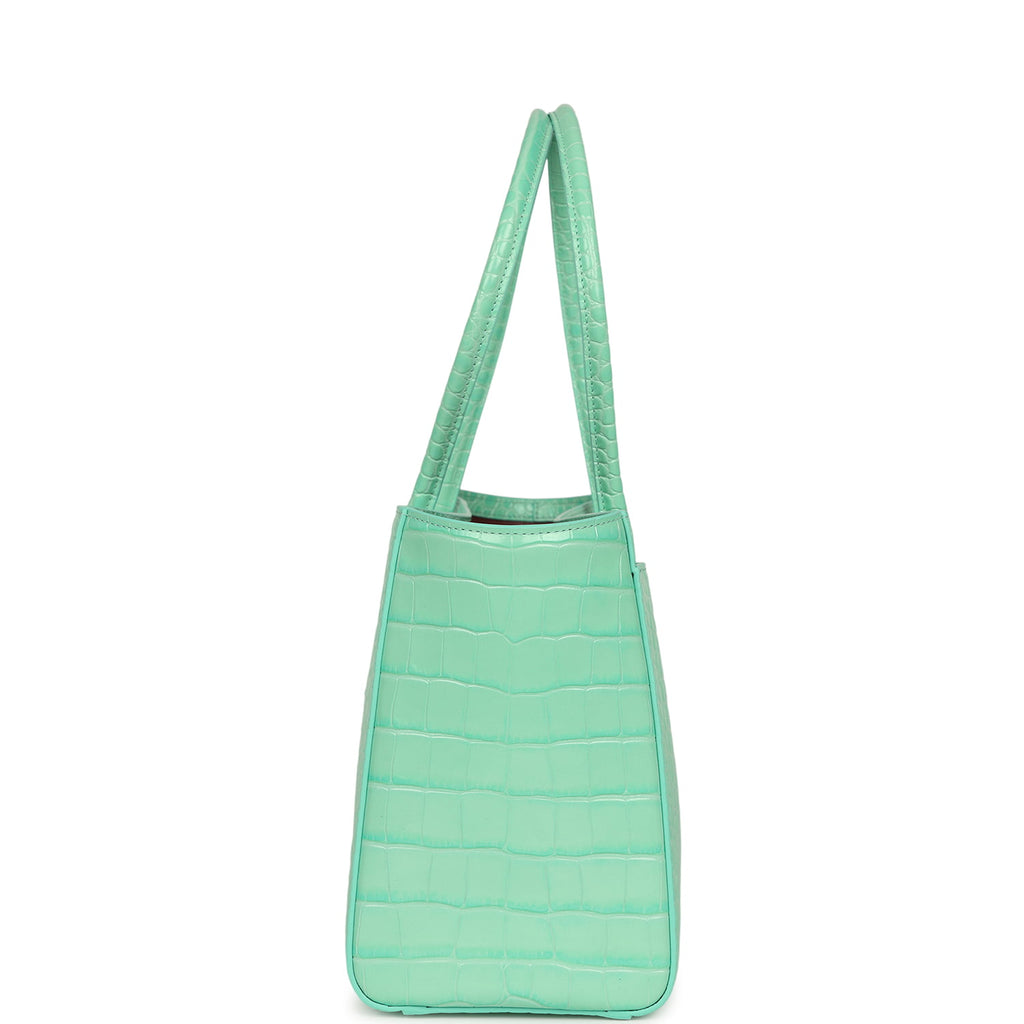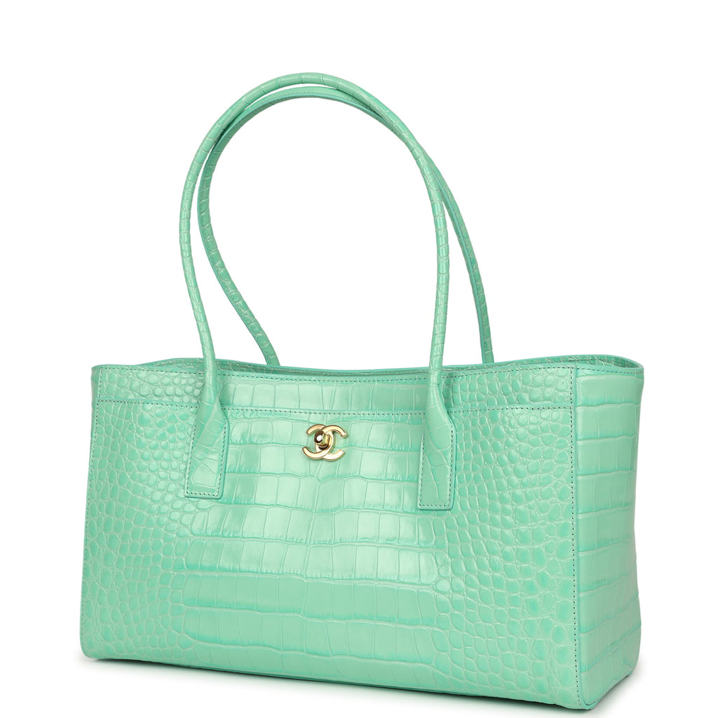 Chanel Small Cerf Shopping Bag Teal Croc Embossed Calfskin Gold Hardware