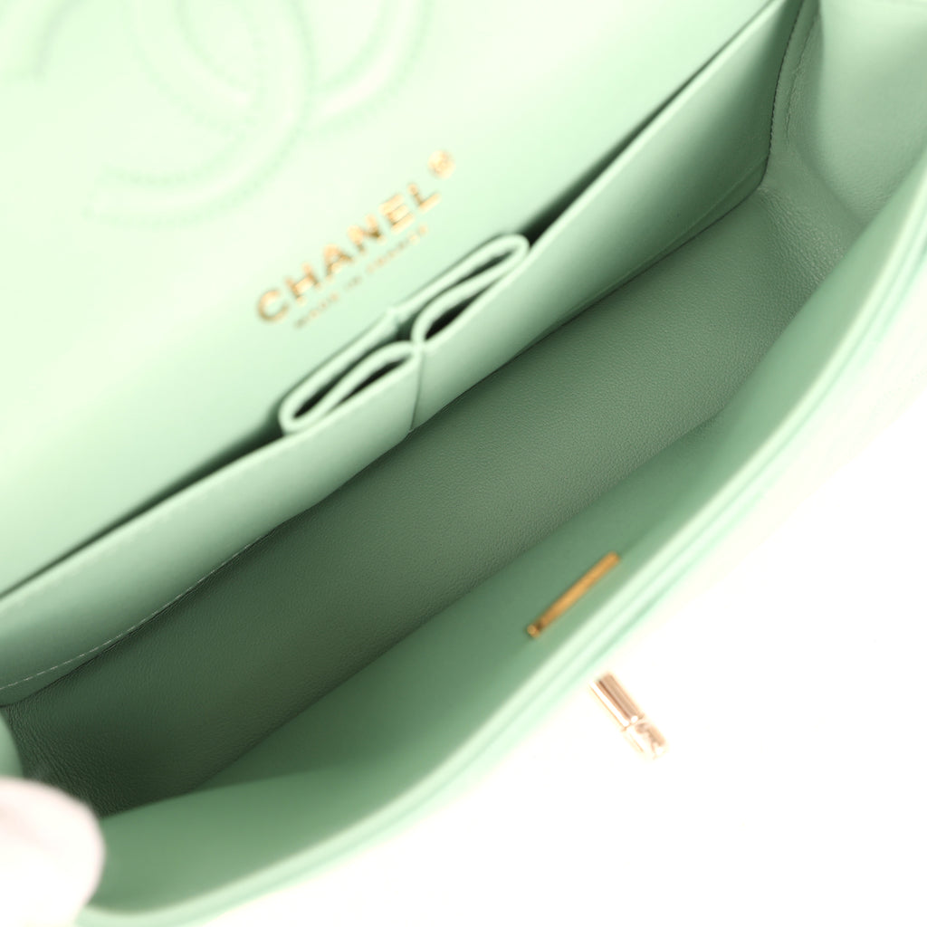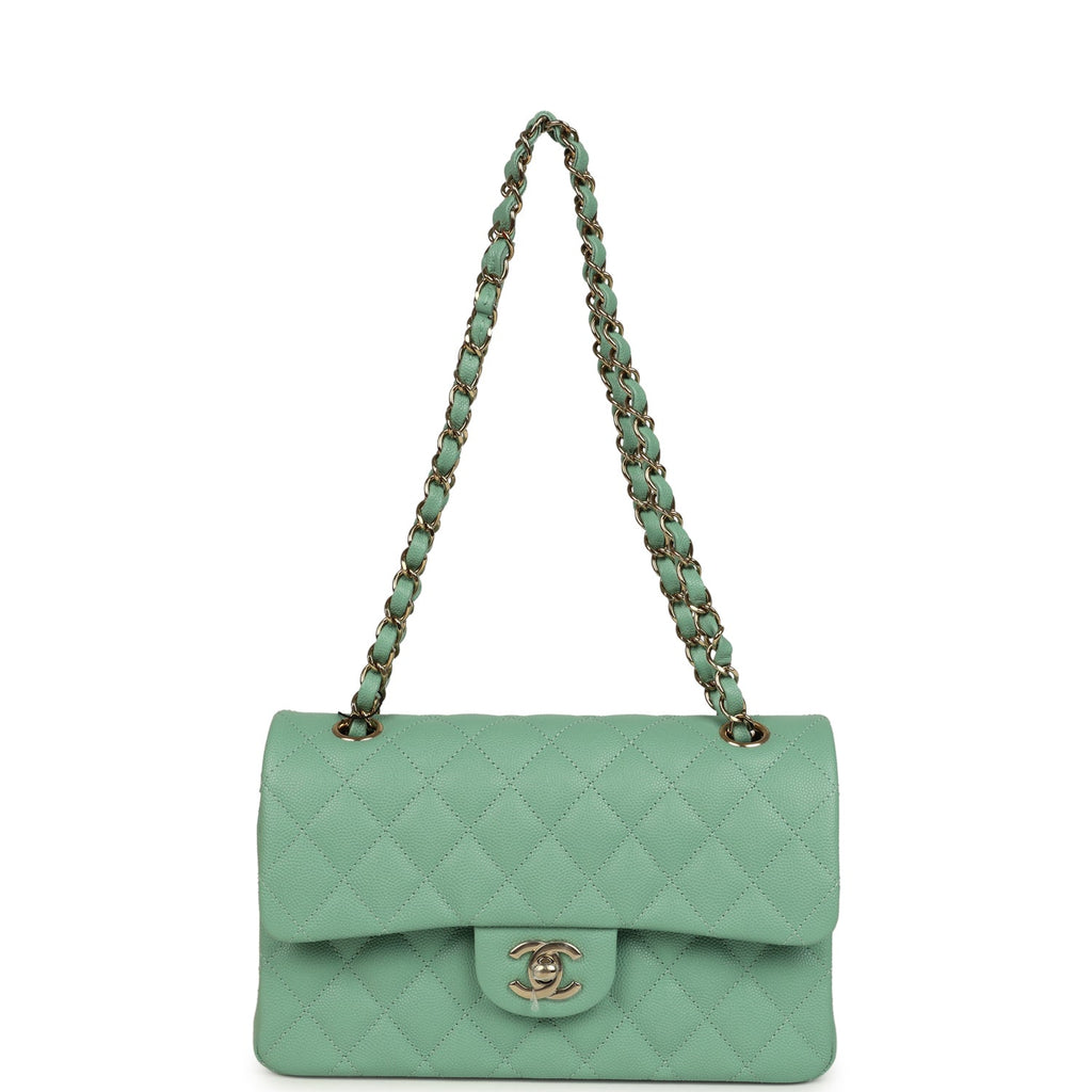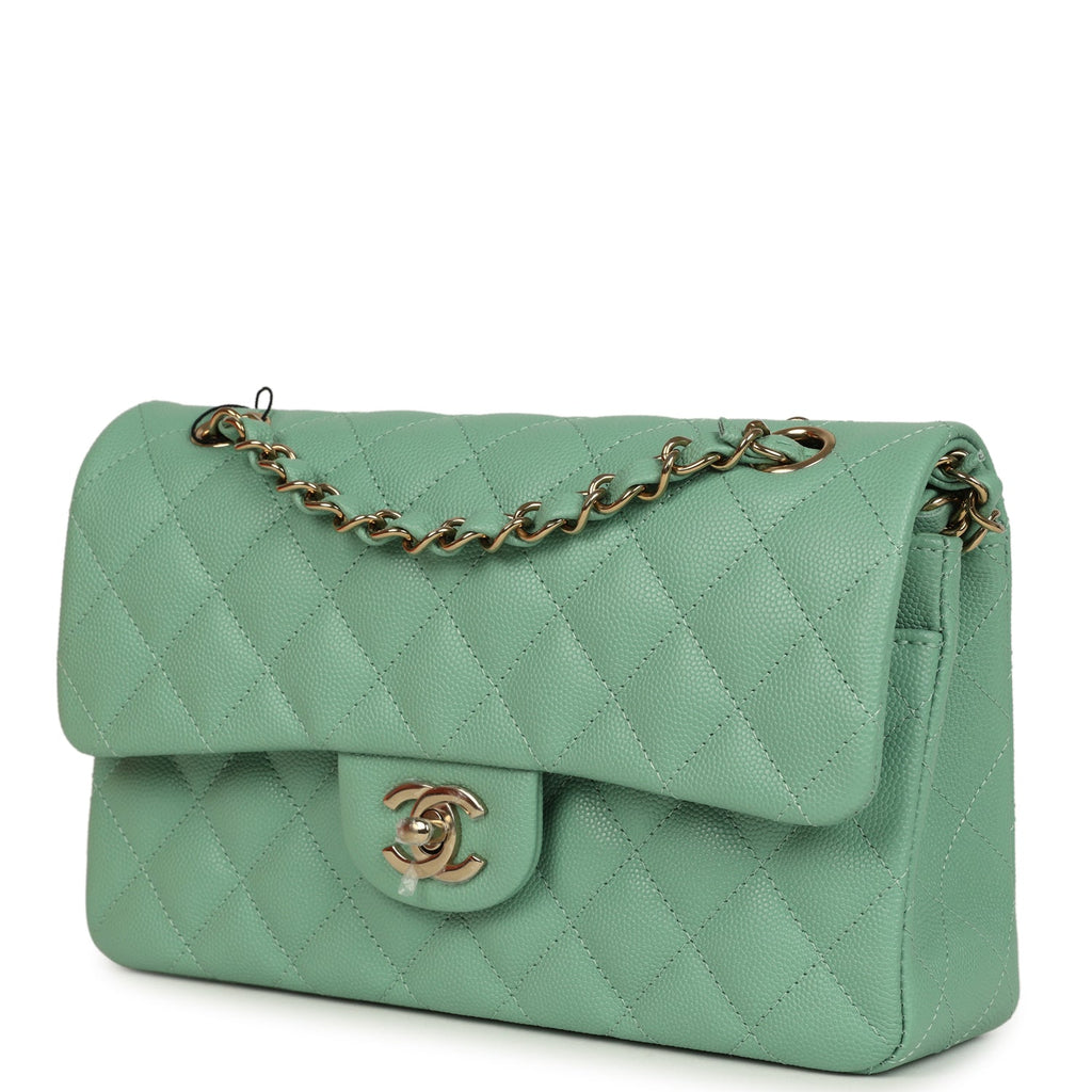 Chanel Small Classic Double Flap Bag Green Caviar Light Gold Hardware