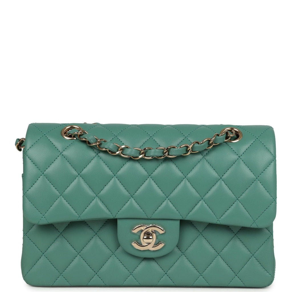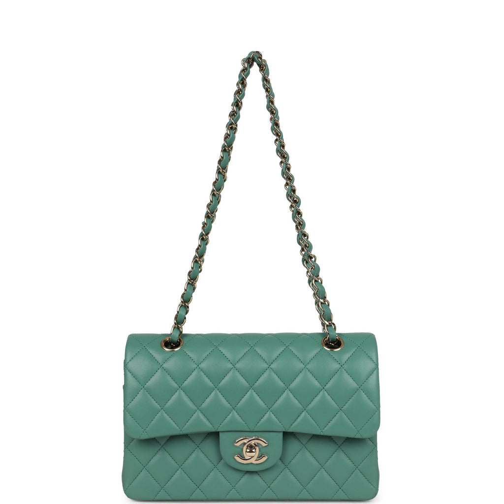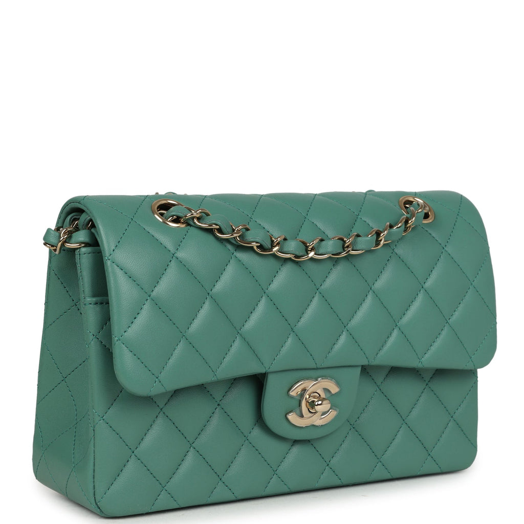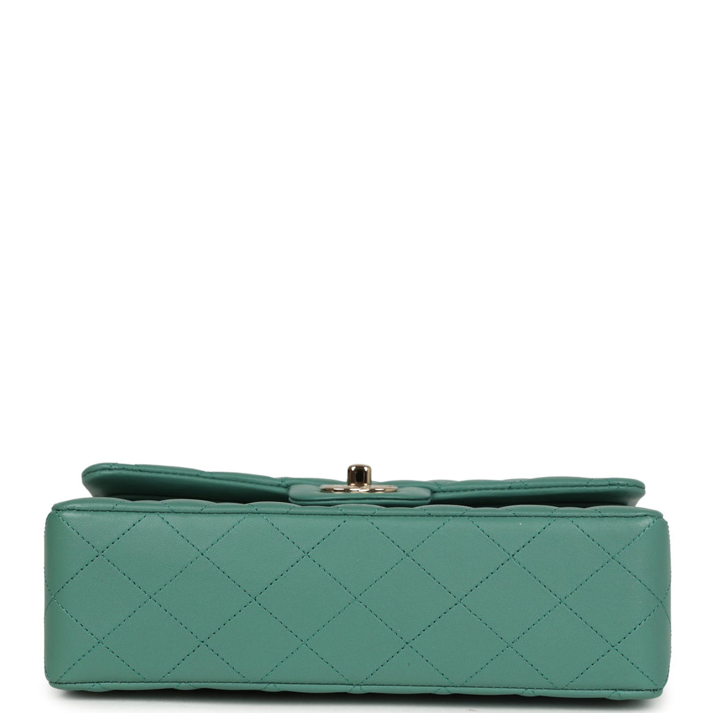 Chanel Small Classic Double Flap Bag Green Lambskin Light Gold Hardware