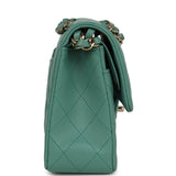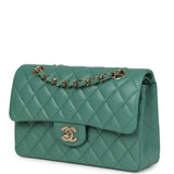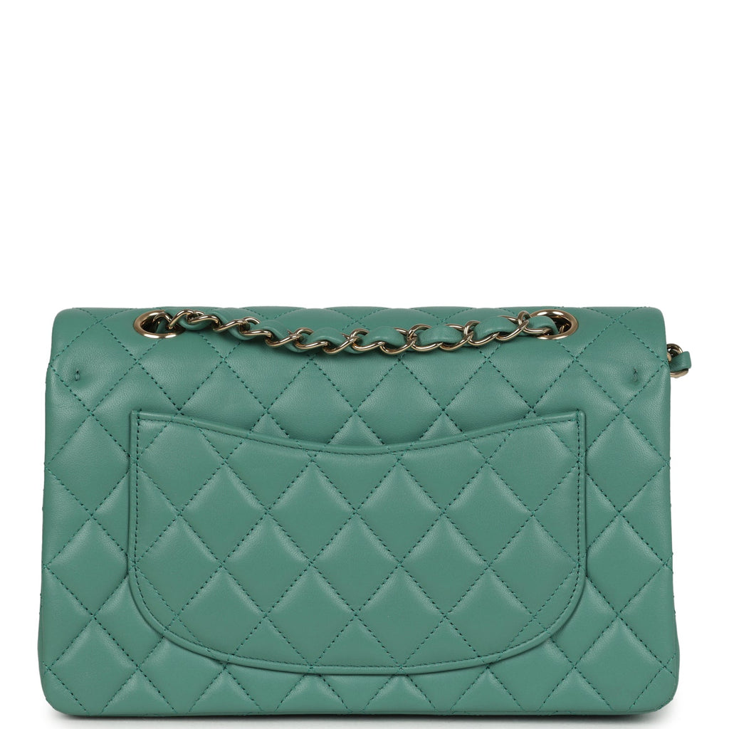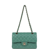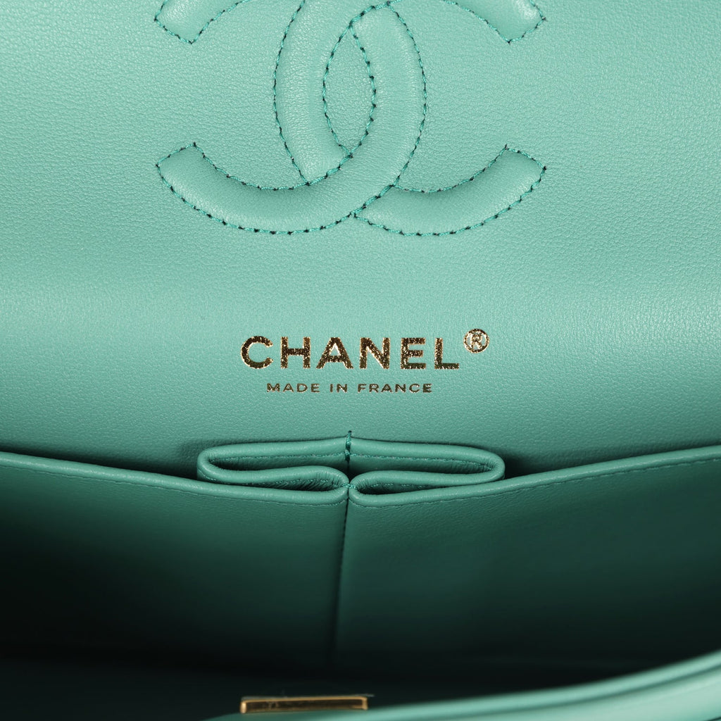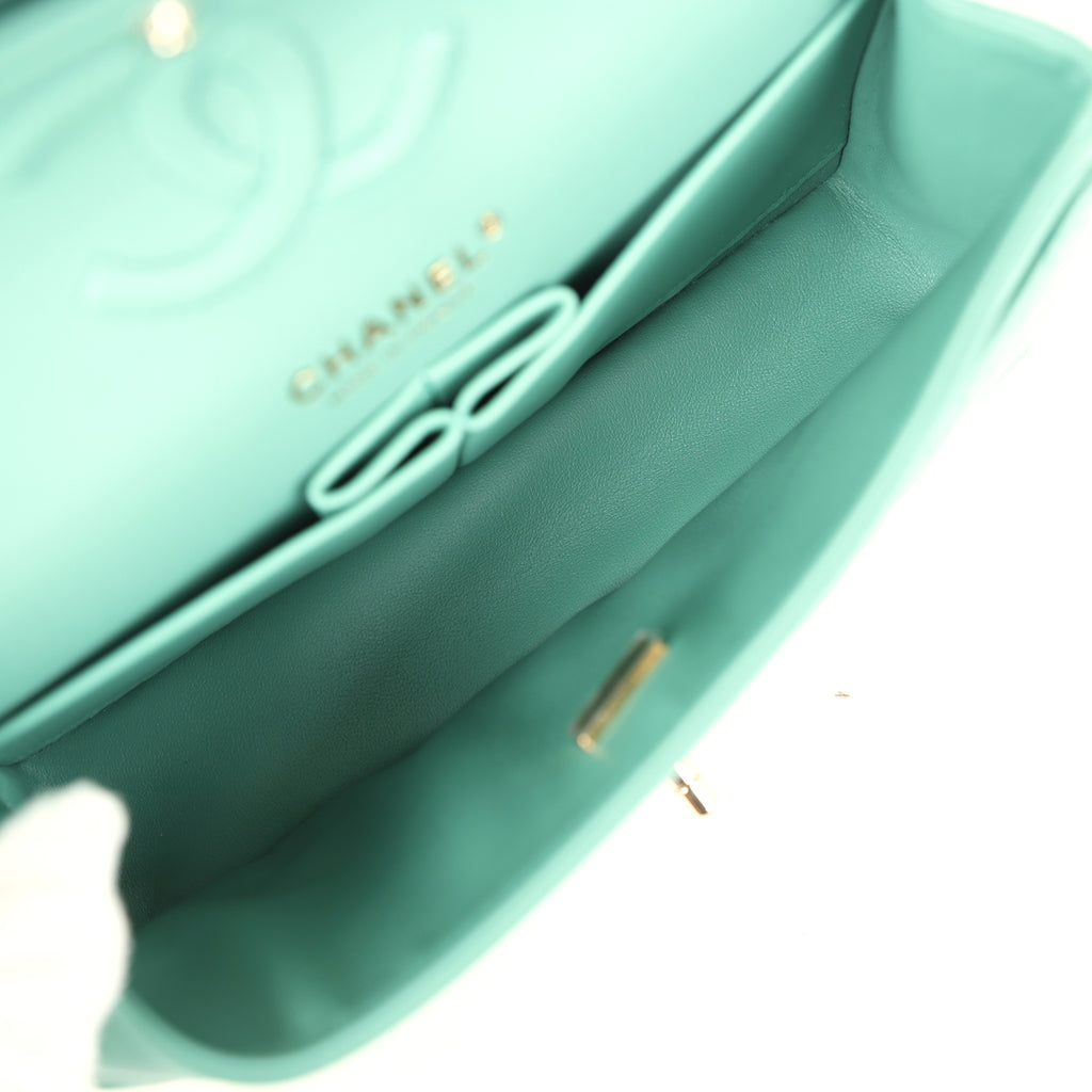 Chanel Small Classic Double Flap Bag Green Lambskin Light Gold Hardware