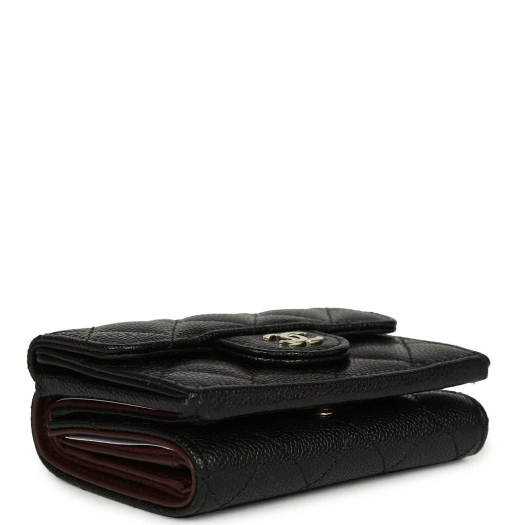 Chanel Small Classic Flap Wallet Black Shiny Caviar Light Gold Hardware