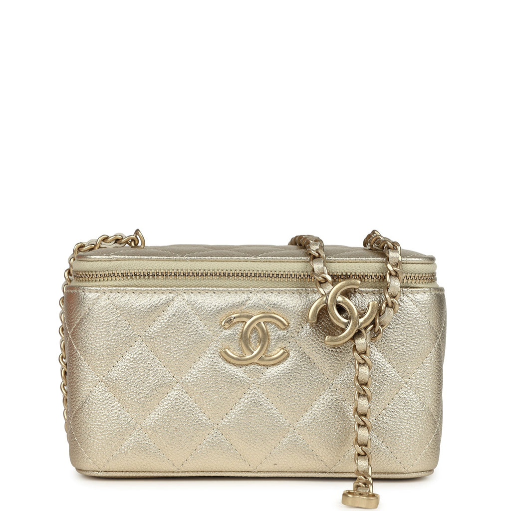 Chanel Small Classic Vanity Case Light Gold Metallic Caviar Brushed Light Gold Hardware