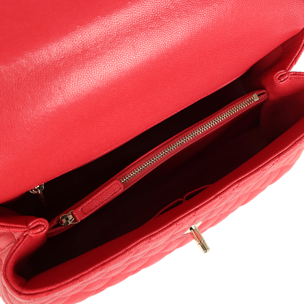 Chanel Small Coco Handle Flap Bag Red Caviar Light Gold Hardware
