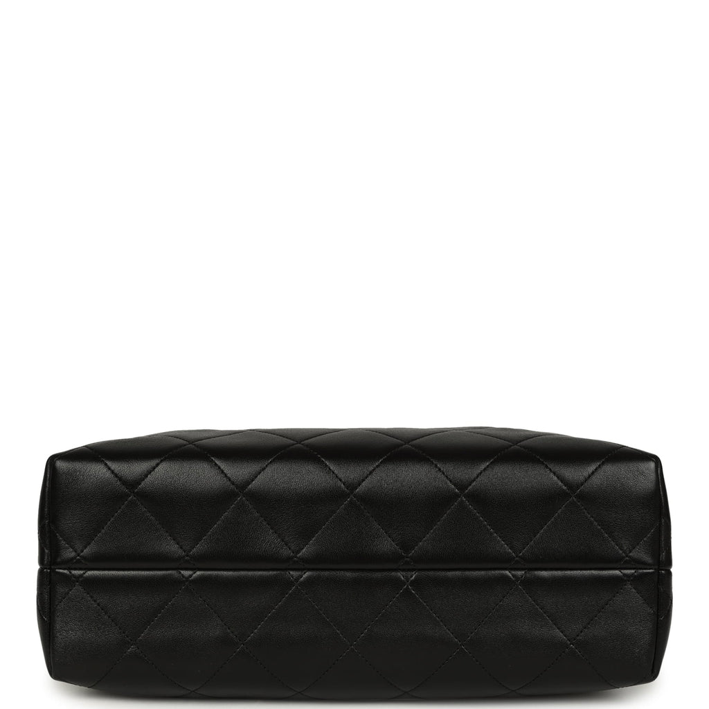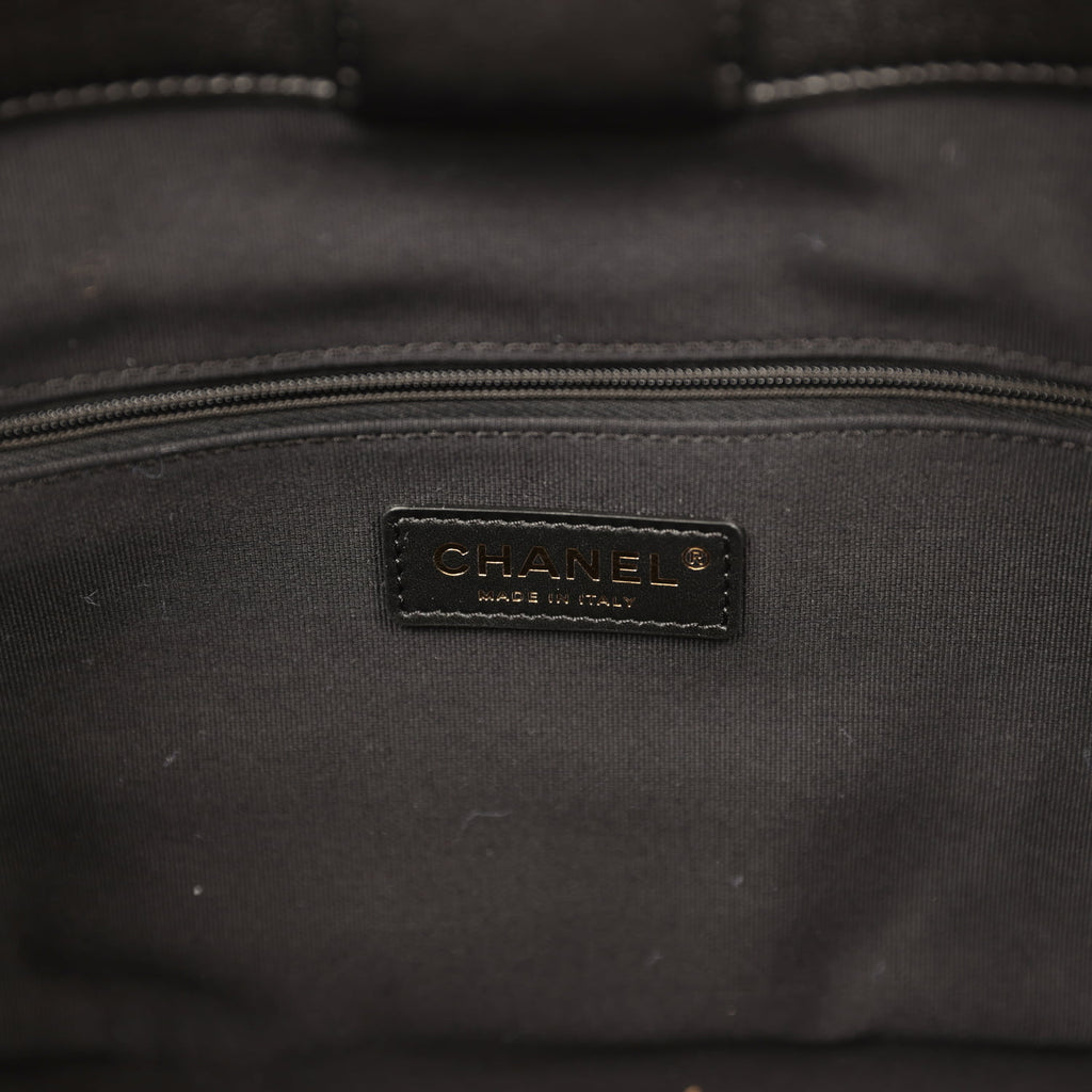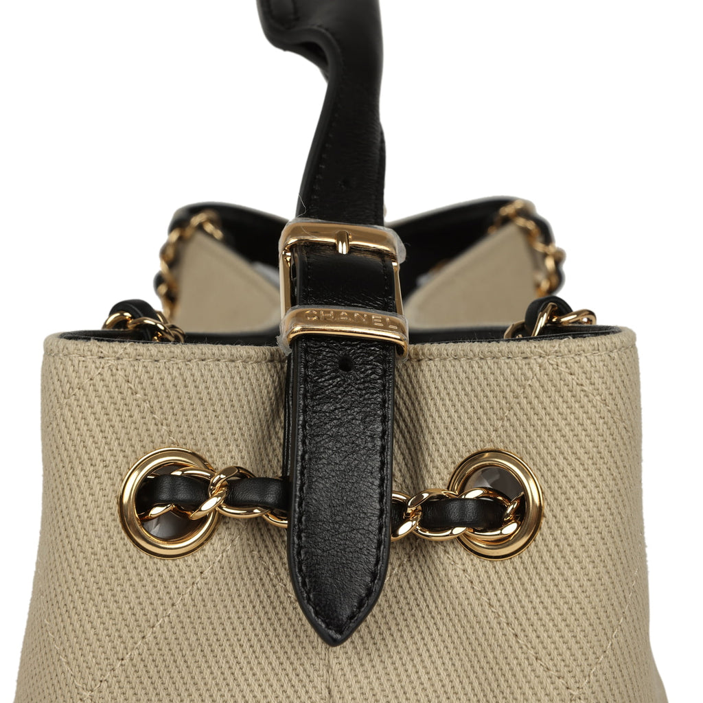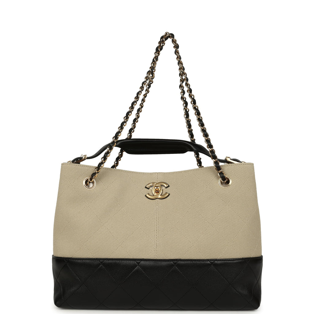 Chanel Small Coco Base Hobo Bag Beige Canvas and Black Shiny Lambskin Gold Hardware