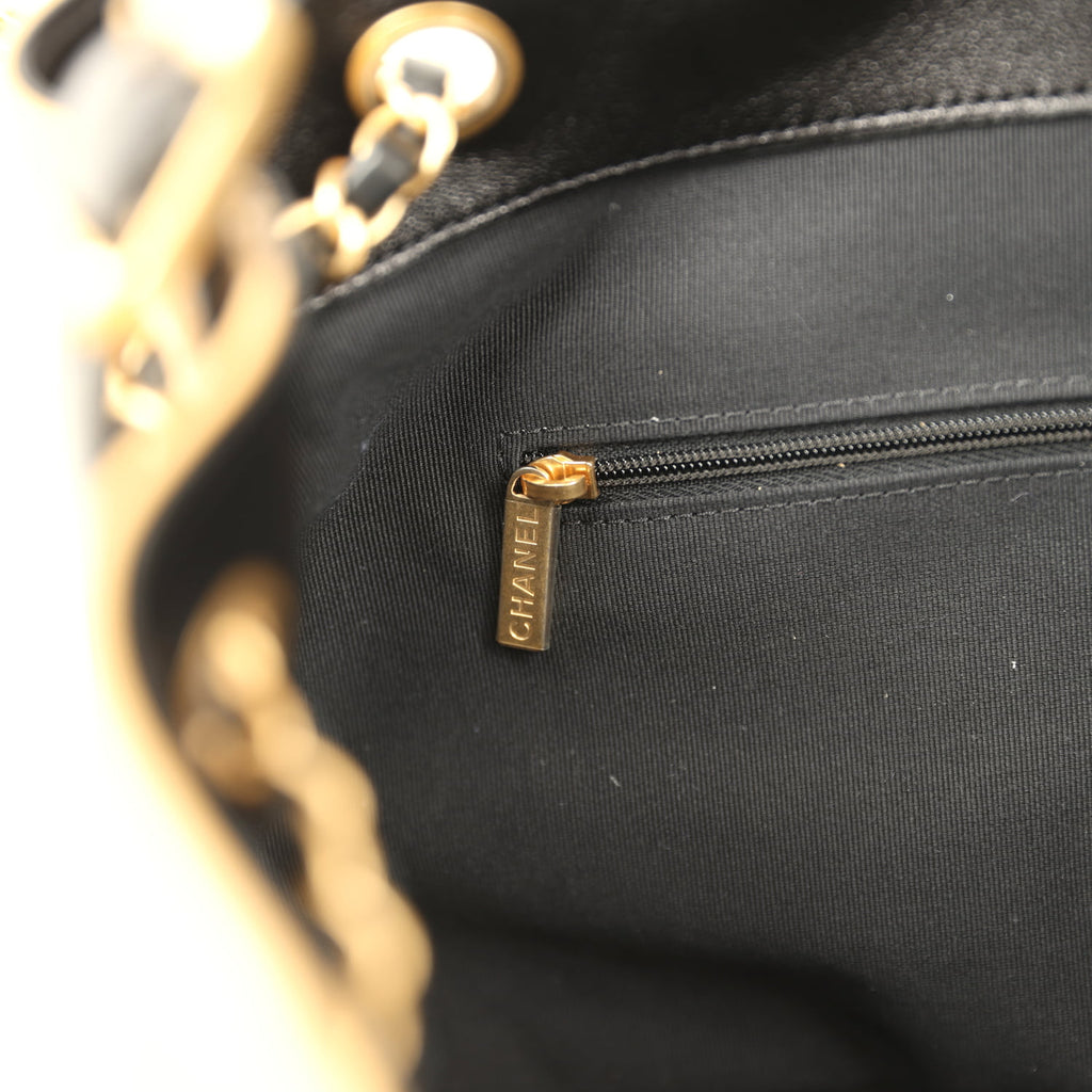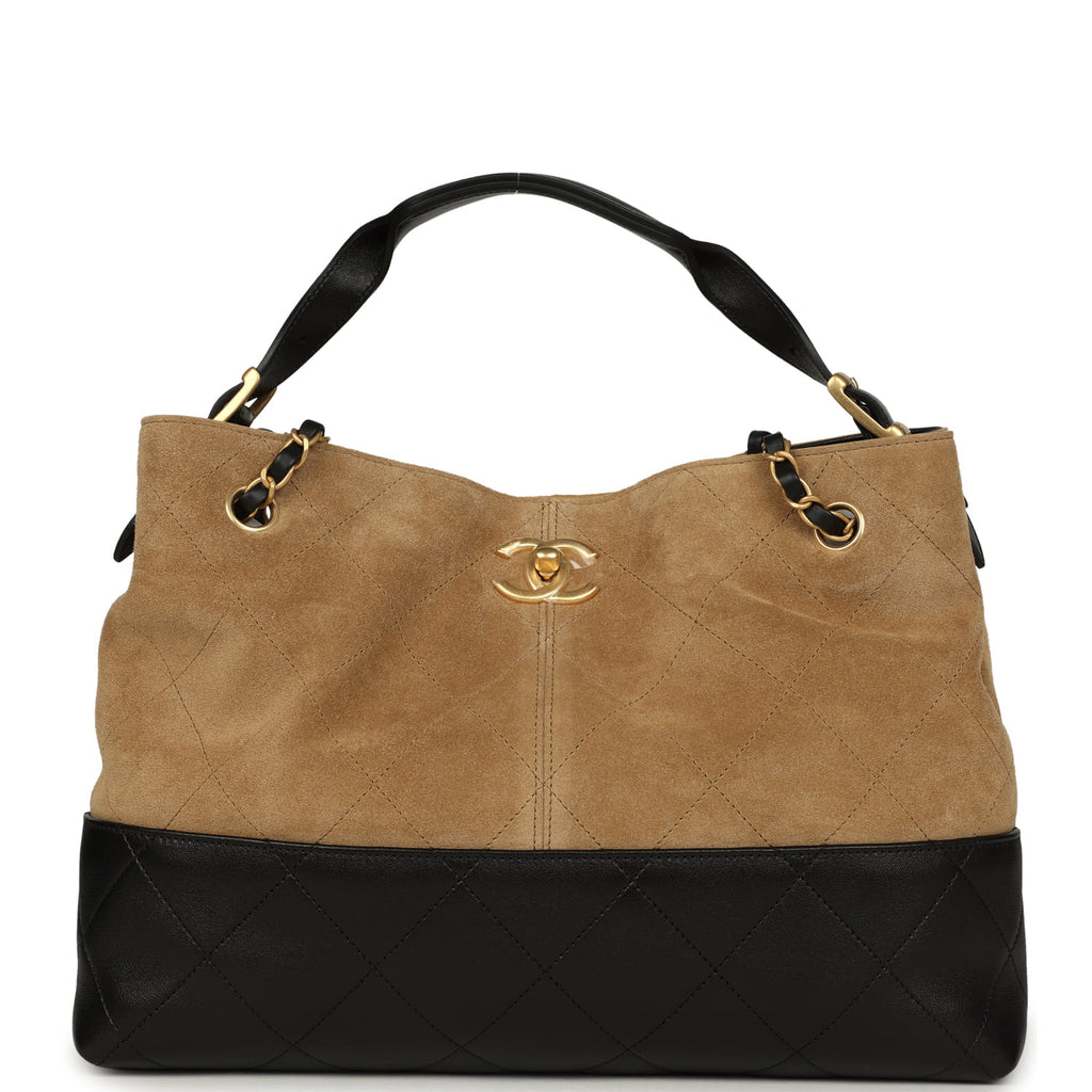 Chanel Small Coco Base Hobo Bag Brown Suede and Black Shiny Lambskin Brushed Gold Hardware