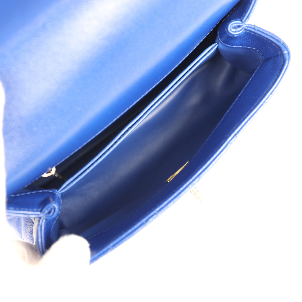 Chanel Small Coco Top Handle Flap Bag Dark Blue Shiny Caviar Light Gold Hardware