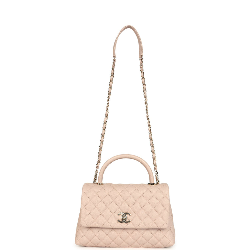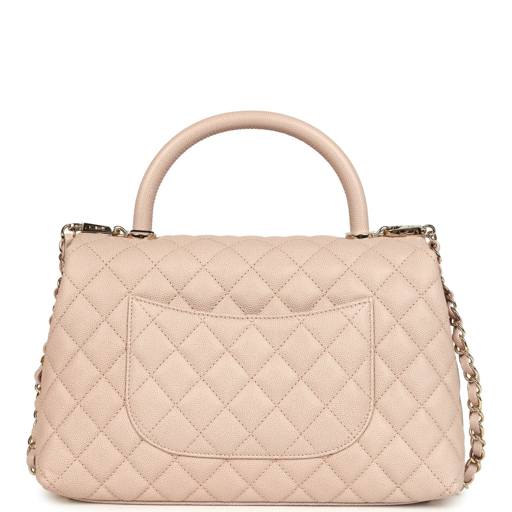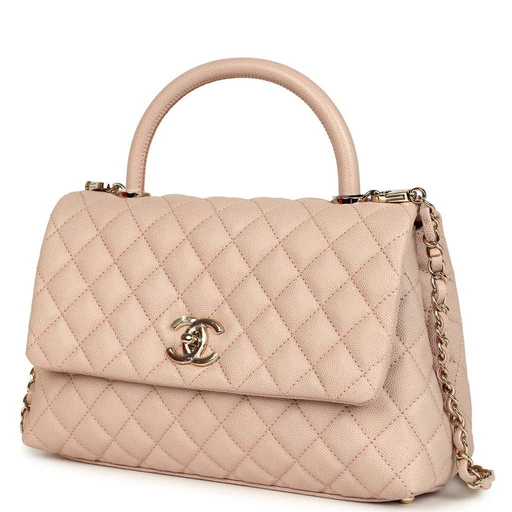 Chanel Small Coco Top Handle Flap Bag Light Beige Caviar Light Gold Hardware