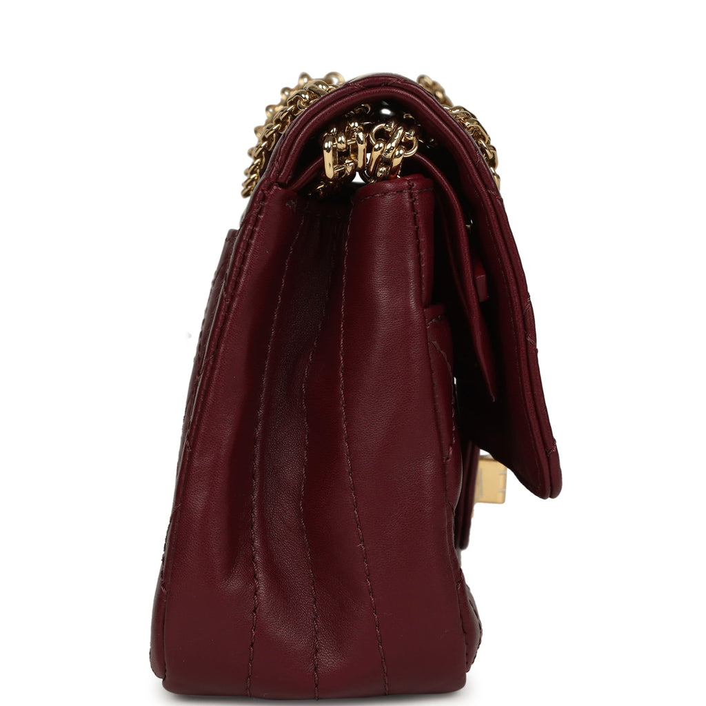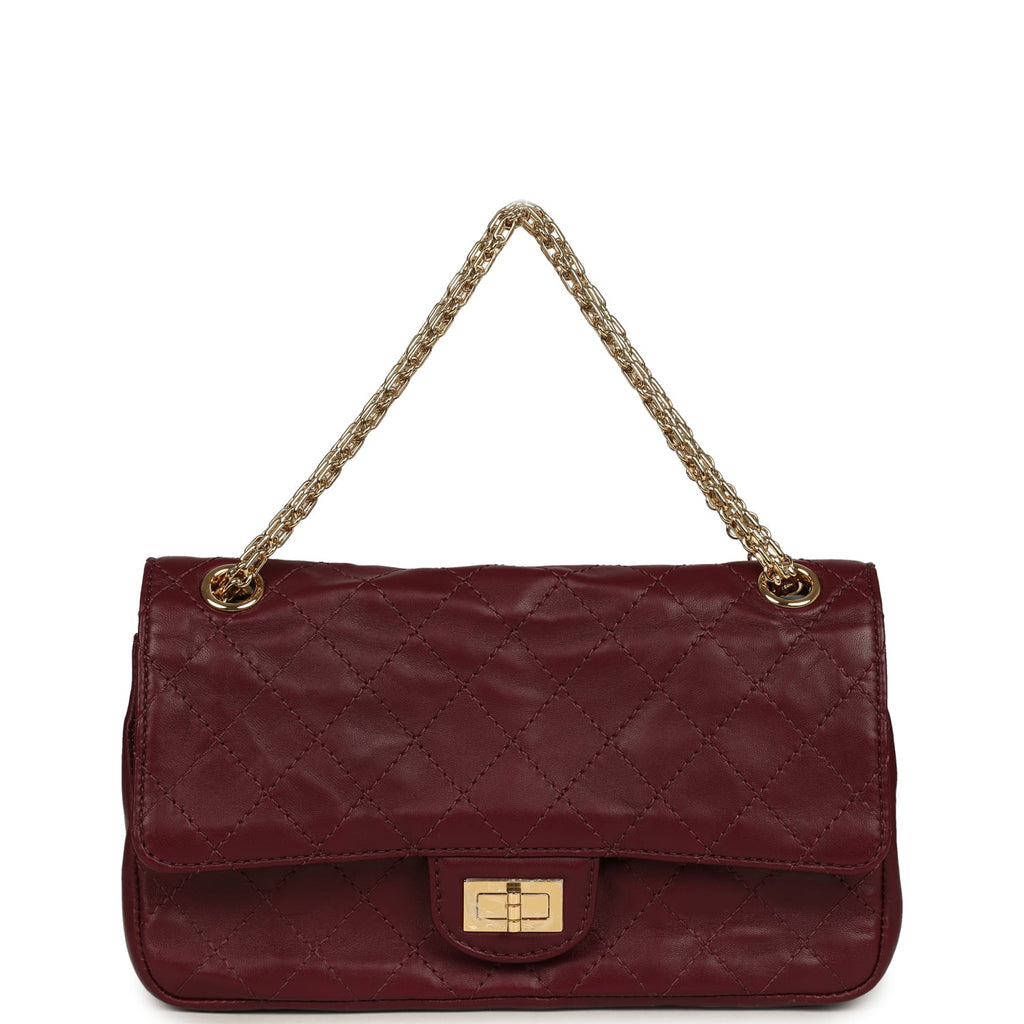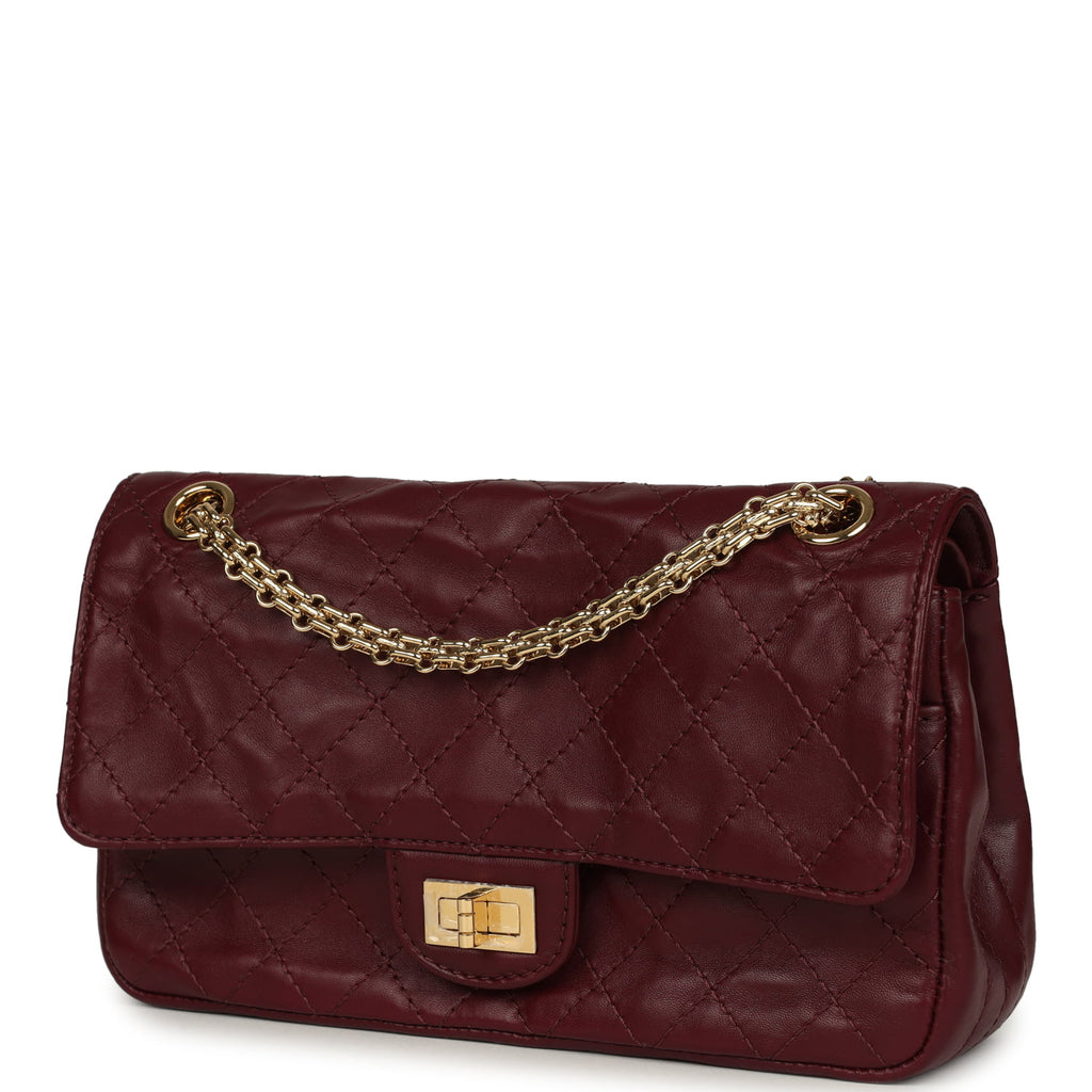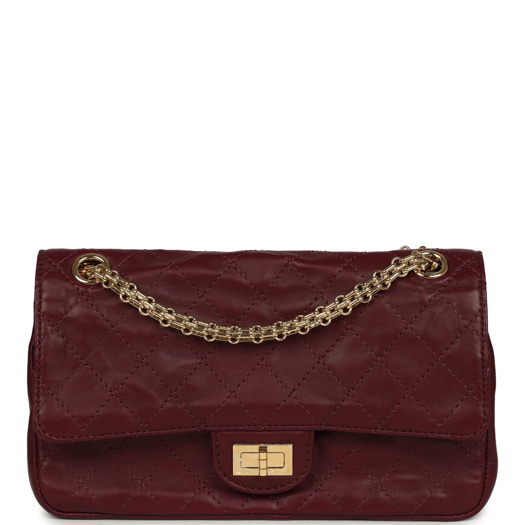 Chanel Small Reissue 225 2.55 Crush Double Flap Bag Burgundy Lambskin Gold Hardware