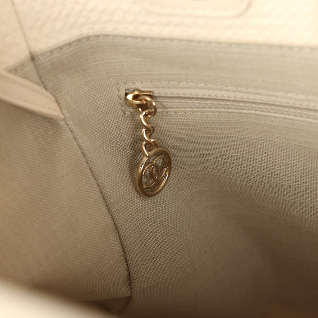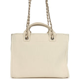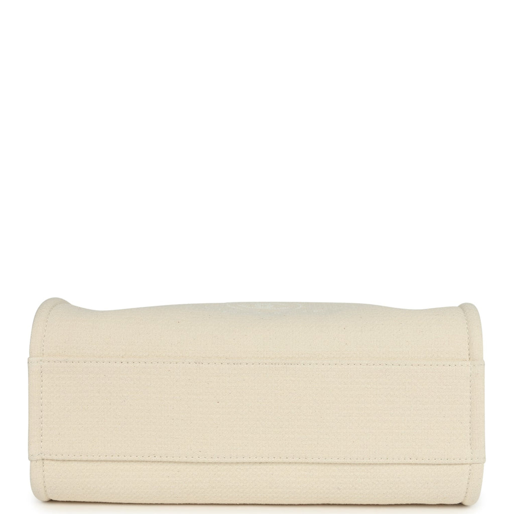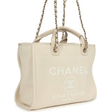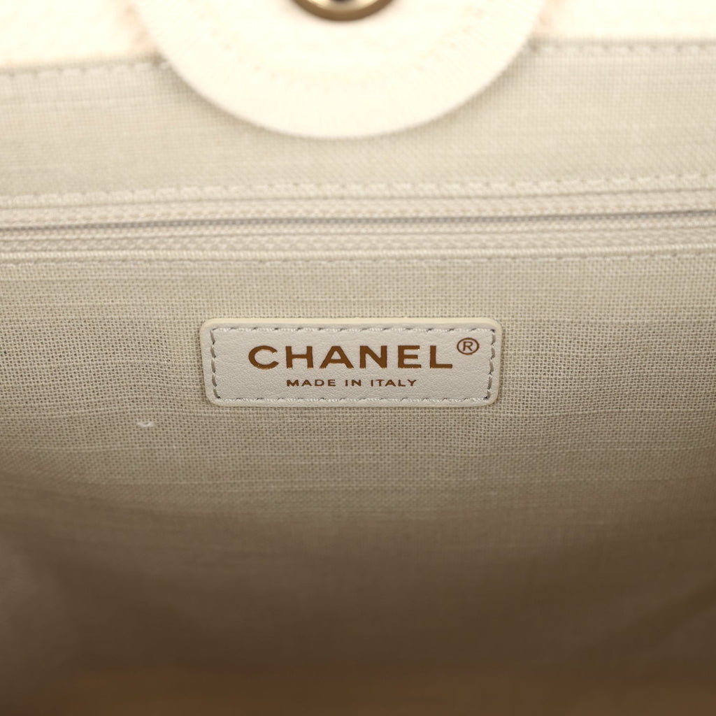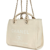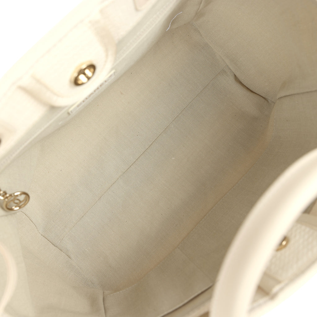 Chanel Small Deauville Shopping Tote Ivory Canvas Light Gold Hardware