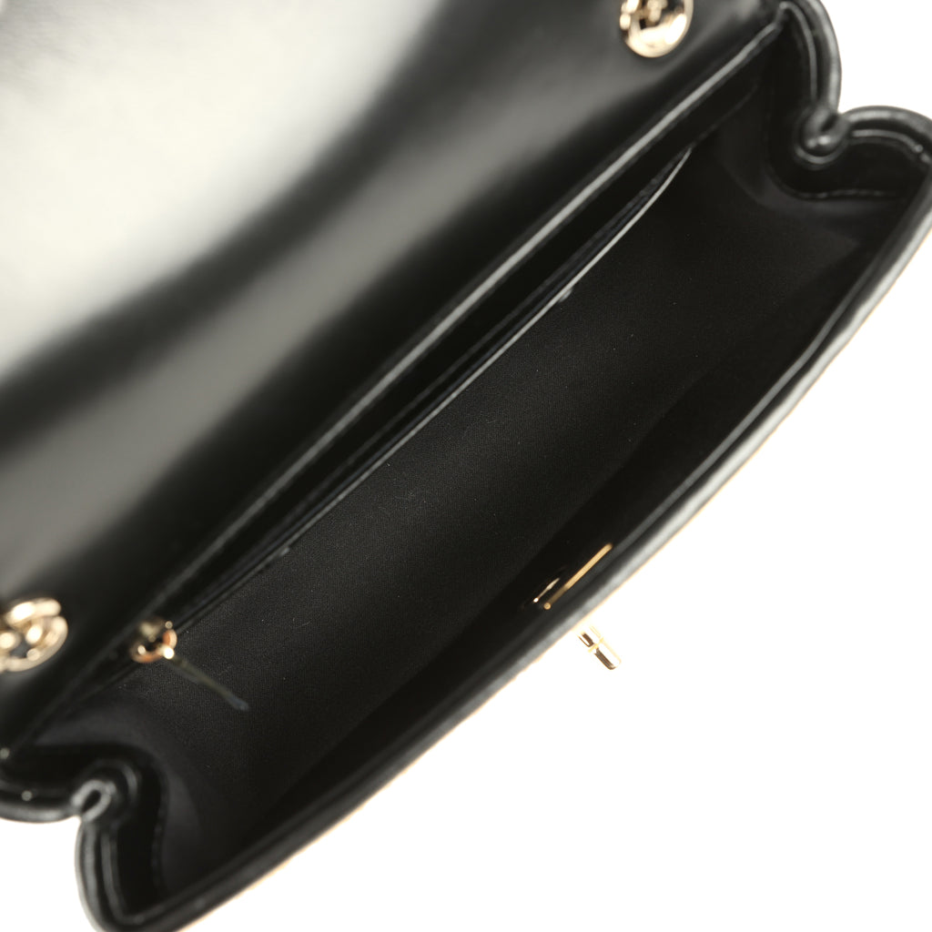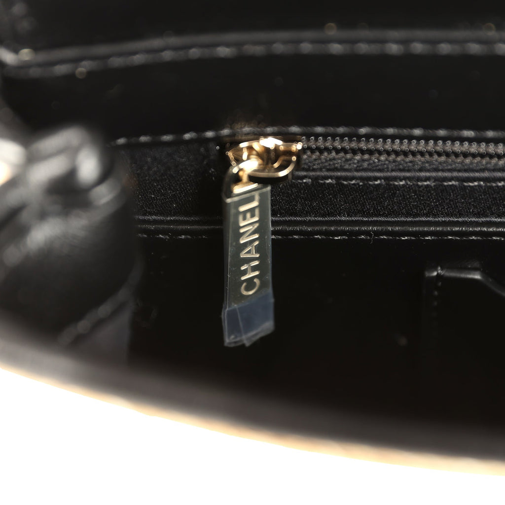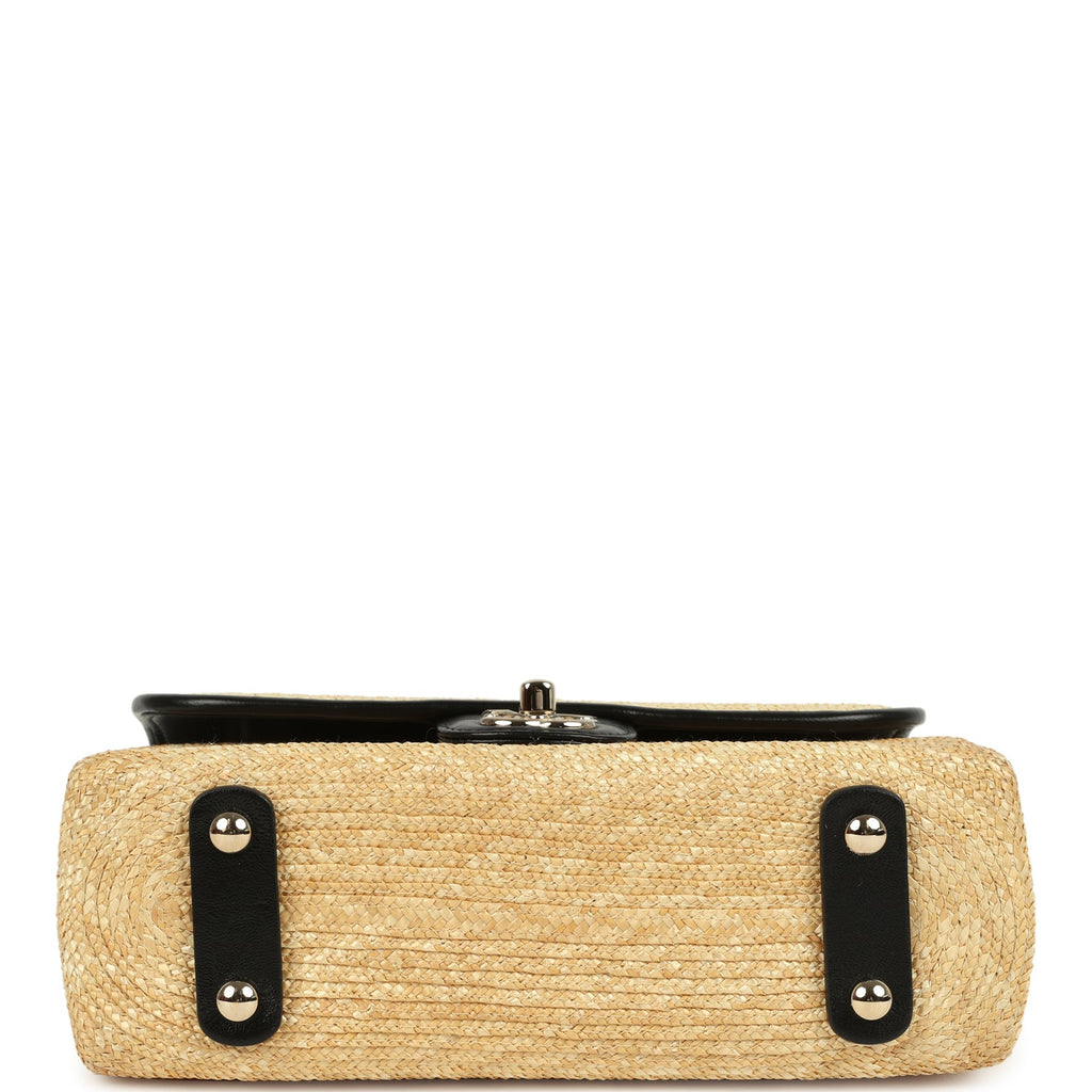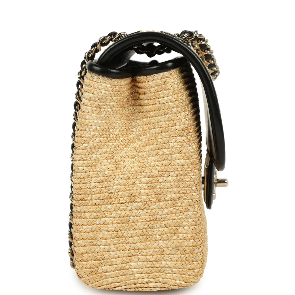 Chanel Small Flap Bag Beige Braided Raffia and Black Lambskin Light Gold Hardware