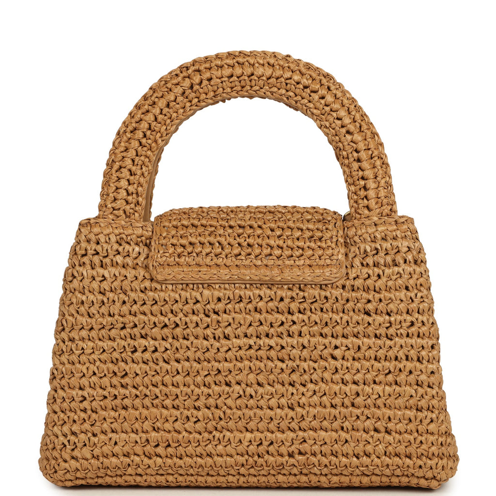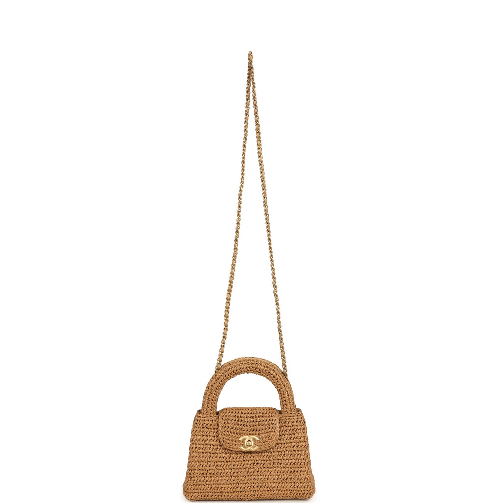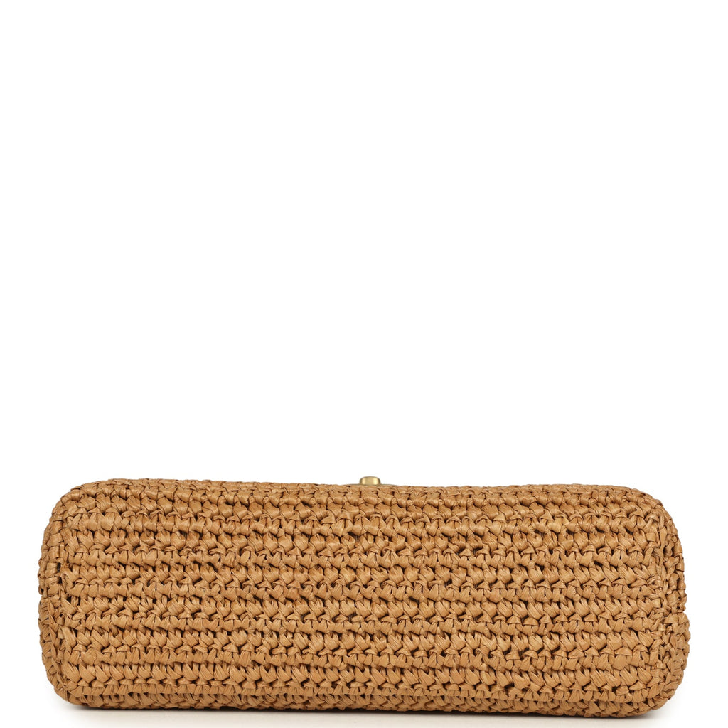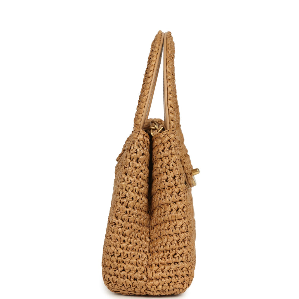 Chanel Small Kelly Dark Beige Raffia Brushed Gold Hardware