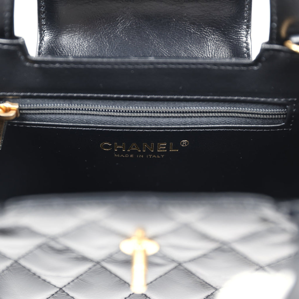 Chanel Small Kelly Shopper Black Shiny Aged Calfskin Brushed Gold Hardware