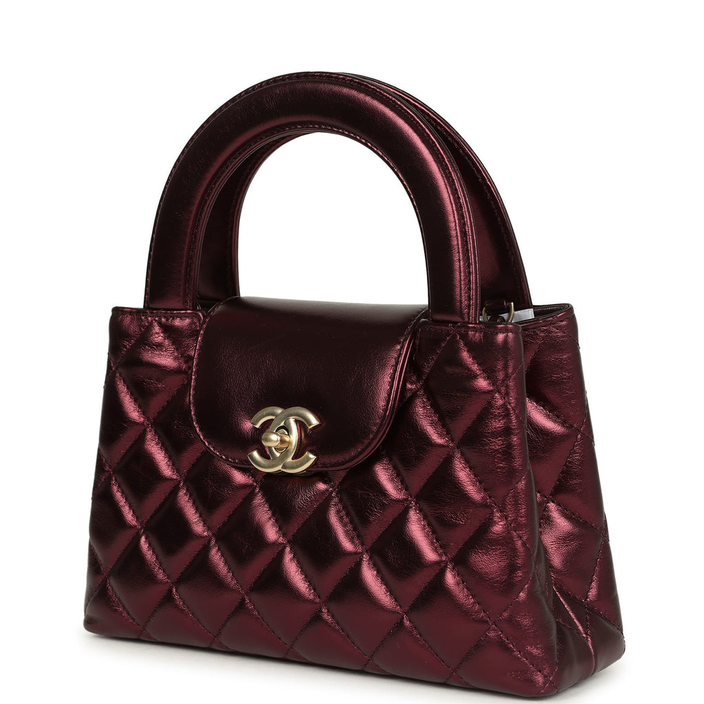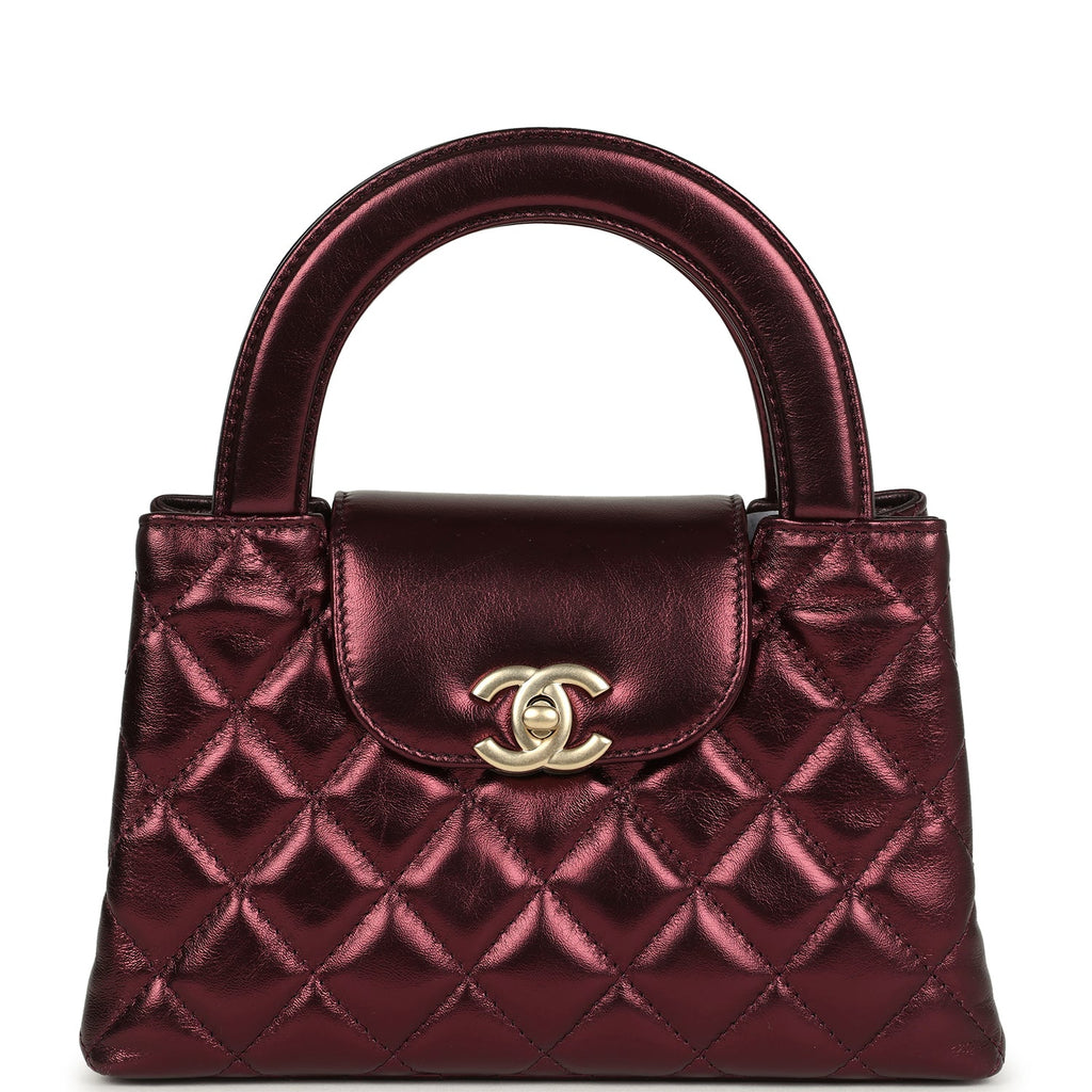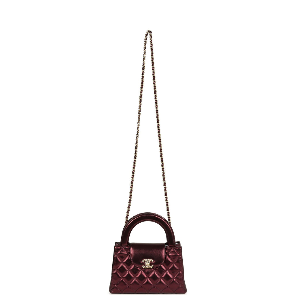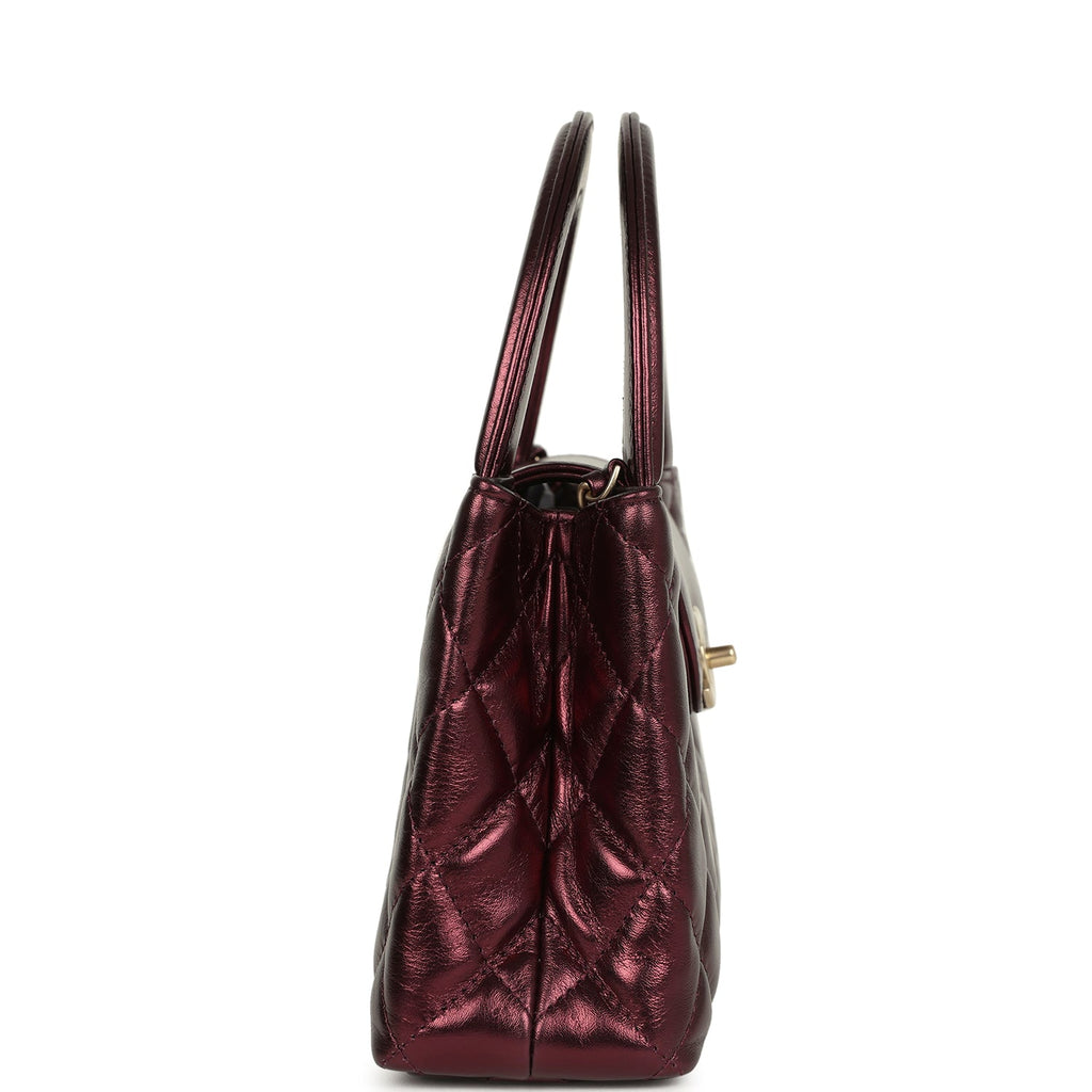 Chanel Small Kelly Shopper Metallic Burgundy Calfskin Brushed Gold Hardware