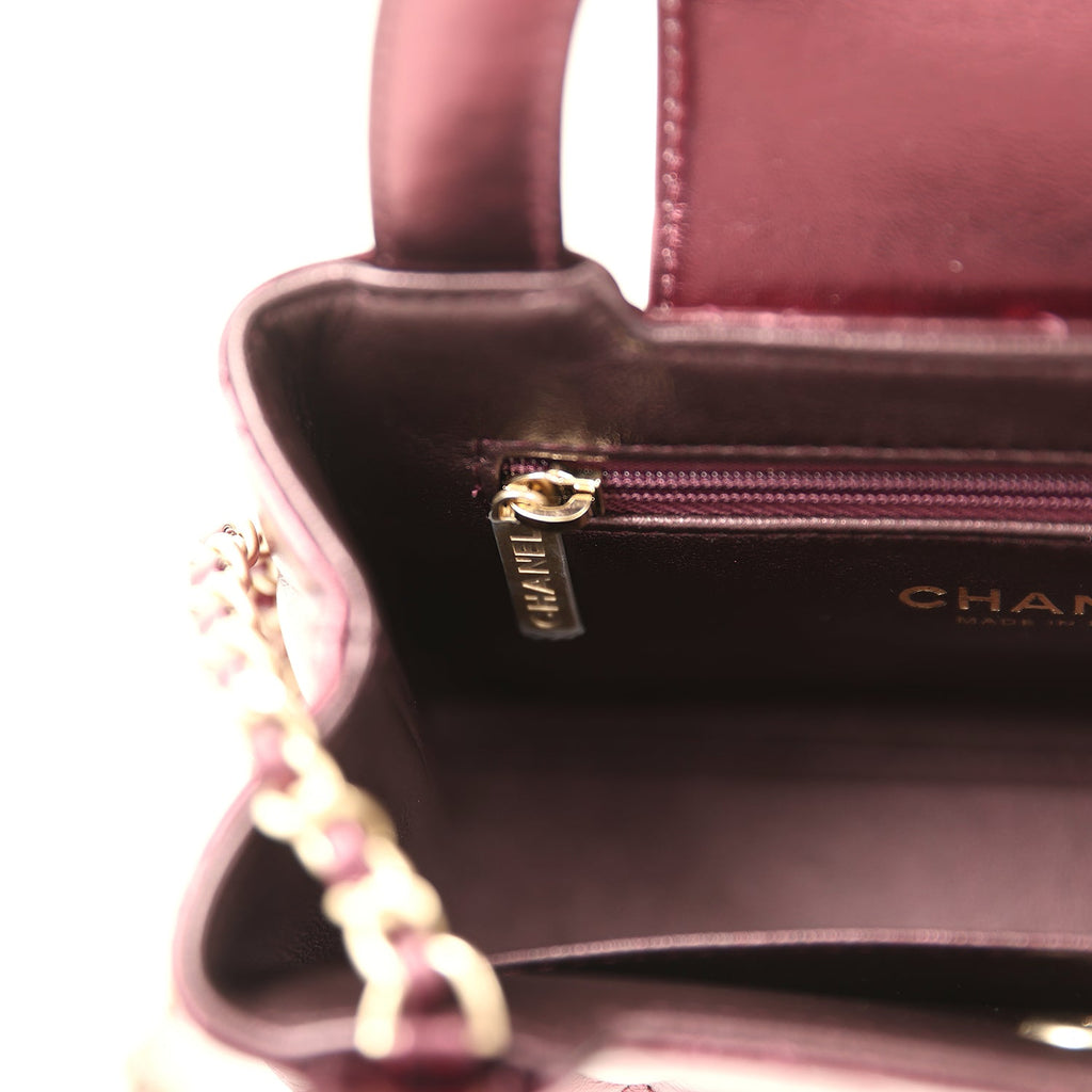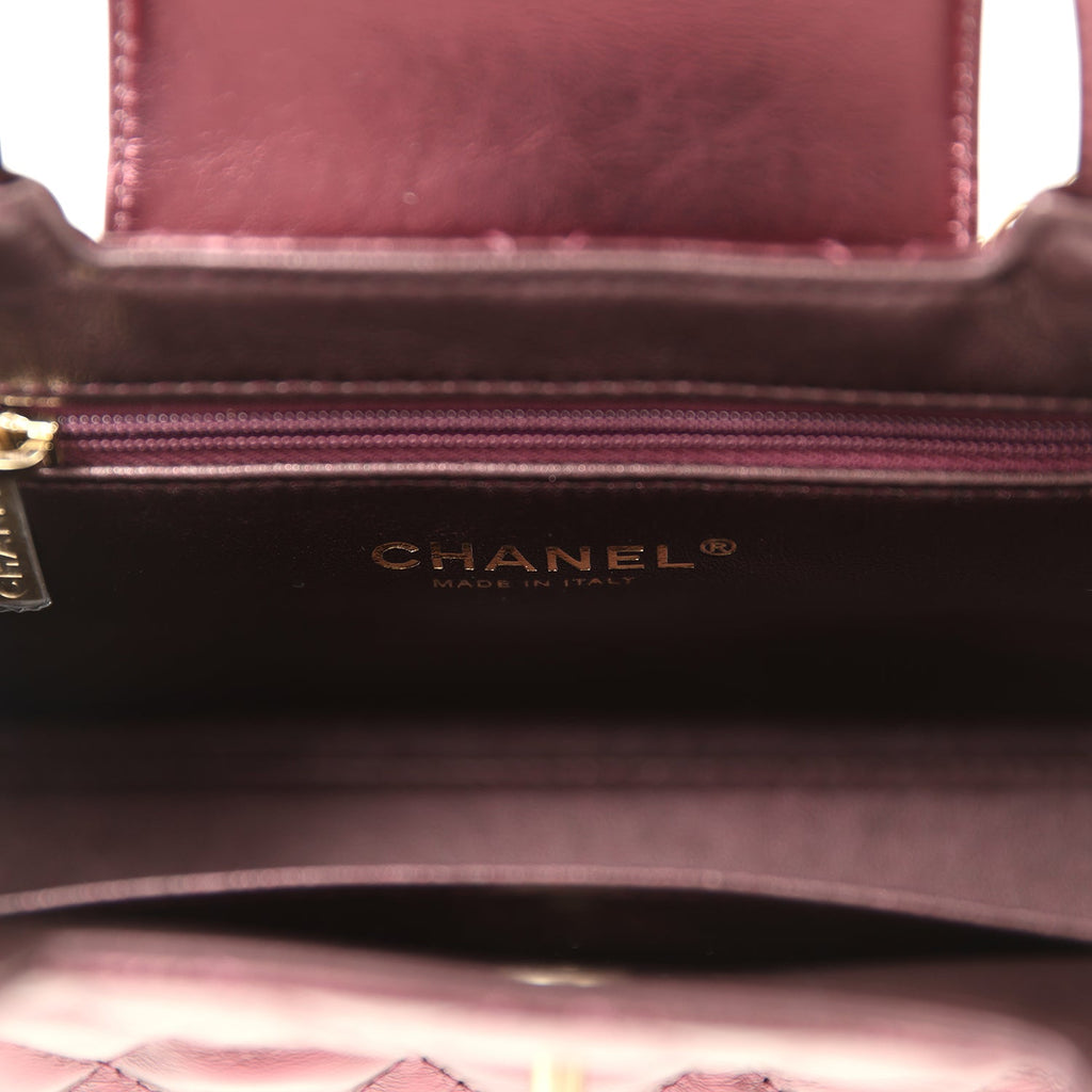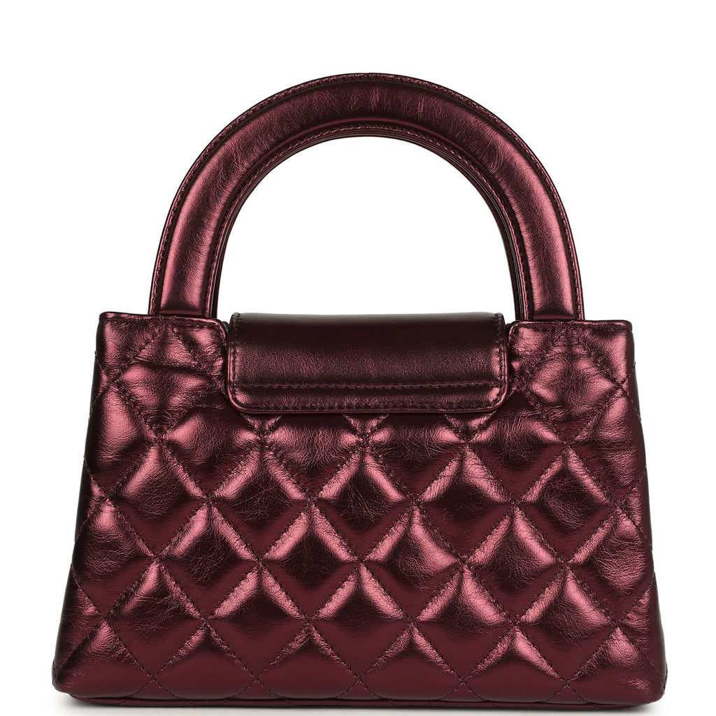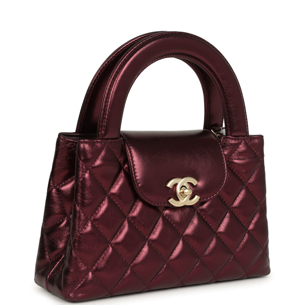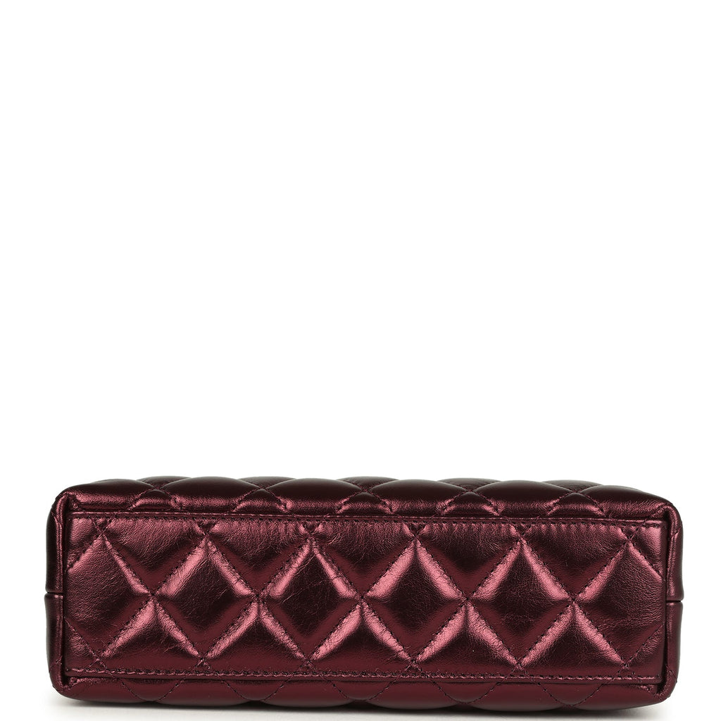 Chanel Small Kelly Shopper Metallic Burgundy Calfskin Brushed Gold Hardware