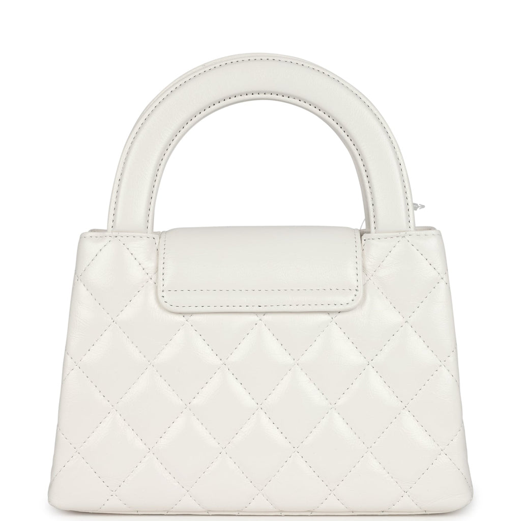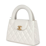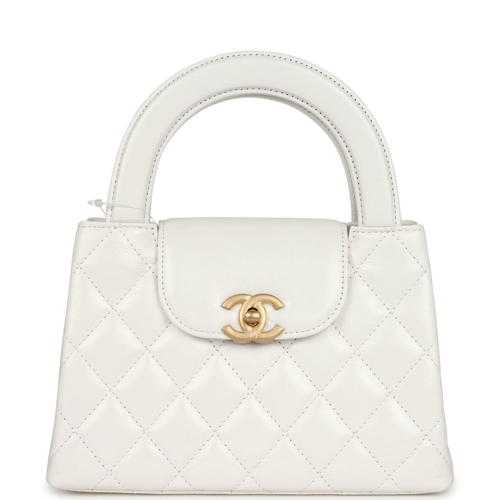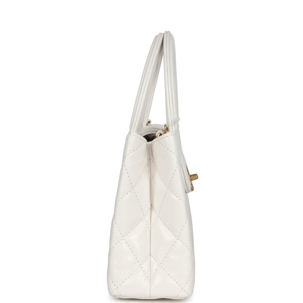 Chanel Small Kelly Shopper White Shiny Aged Calfskin Brushed Gold Hardware