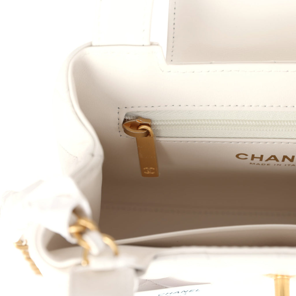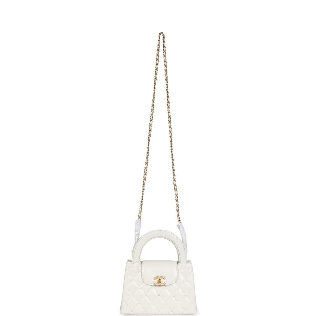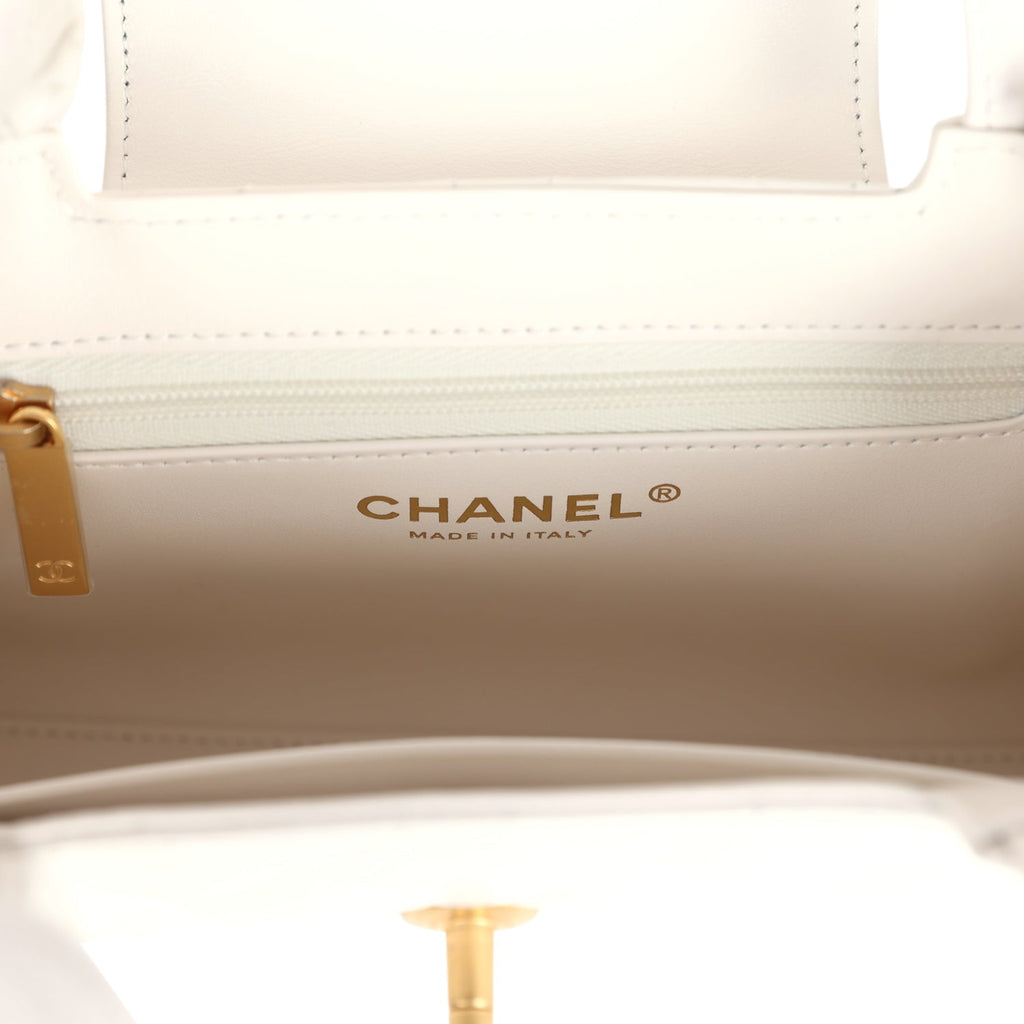 Chanel Small Kelly Shopper White Shiny Aged Calfskin Brushed Gold Hardware