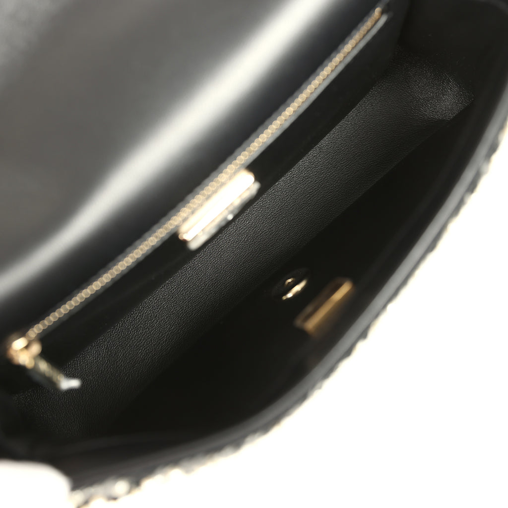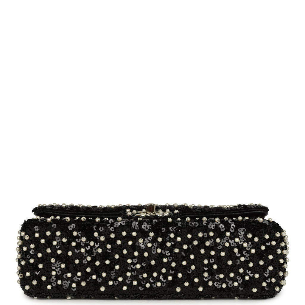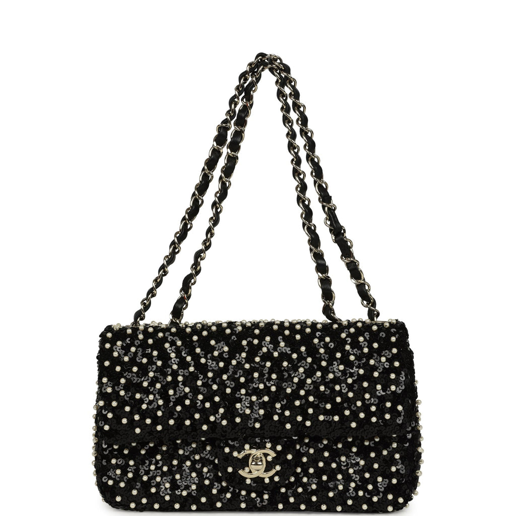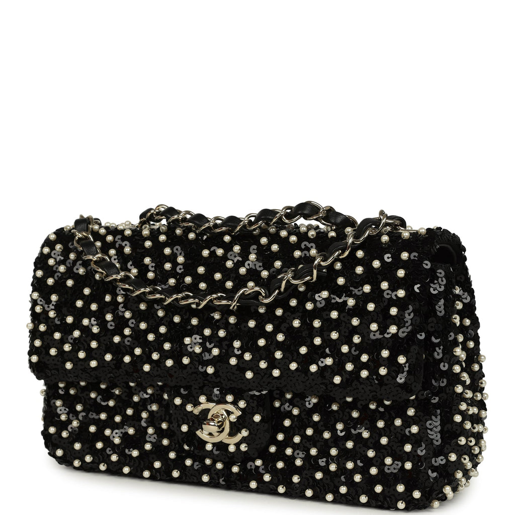 Chanel Small Pearl Beaded Flap Bag Black and White Sequins Light Gold Hardware