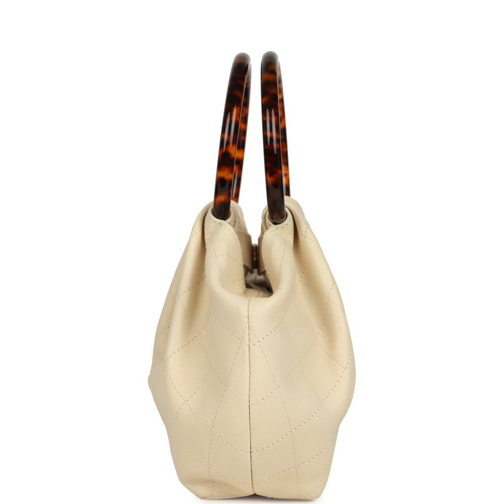 Chanel Small Pouch Light Beige Lambskin Tortoiseshell Hardware