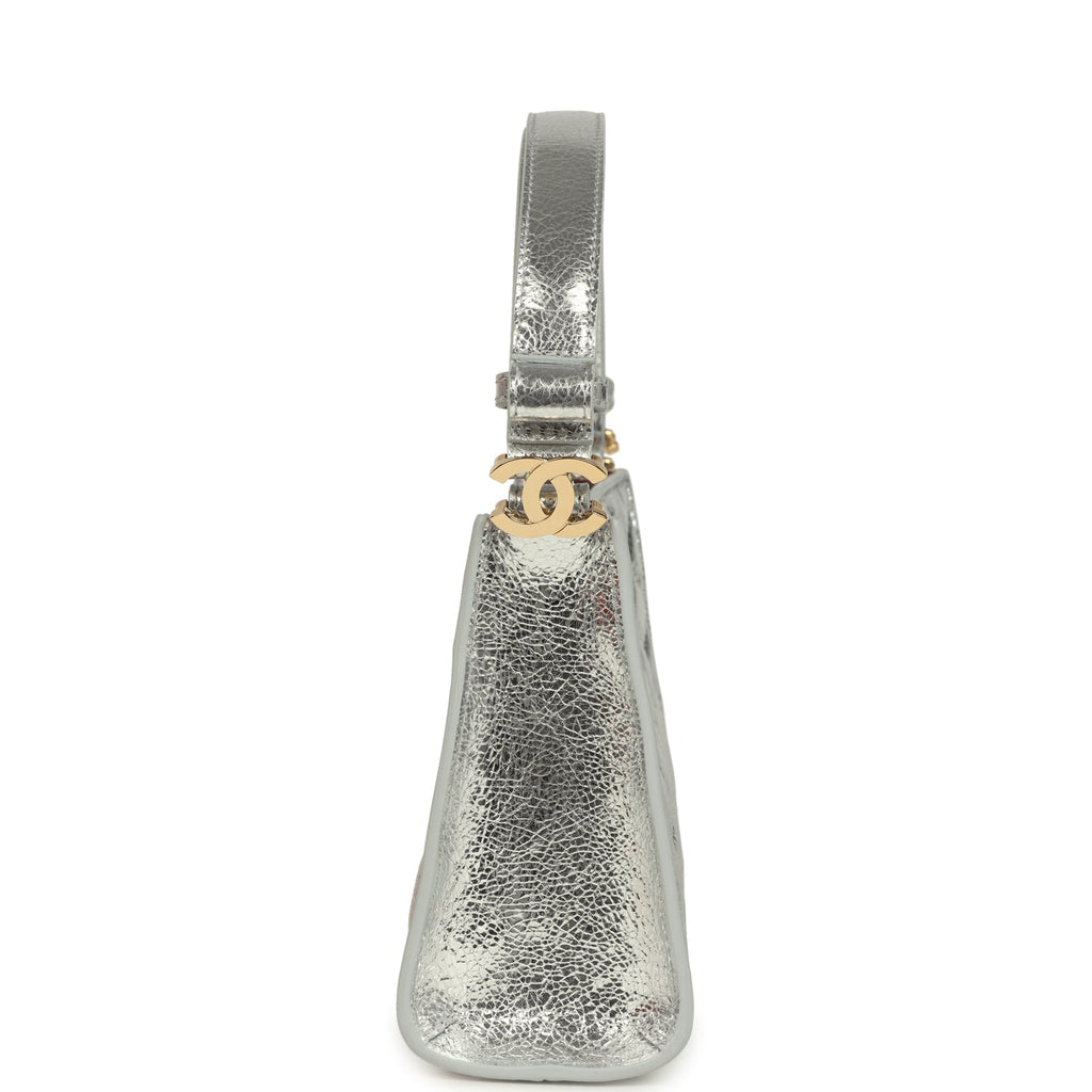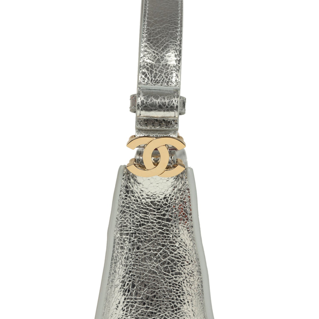 Chanel Small Quilted CC Shoulder Bag Metallic Silver Aged Calfskin Gold Hardware
