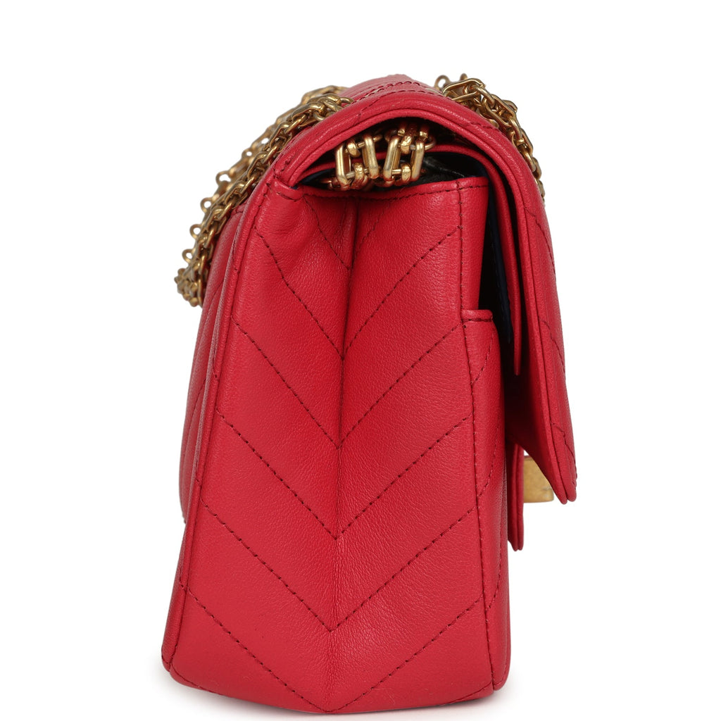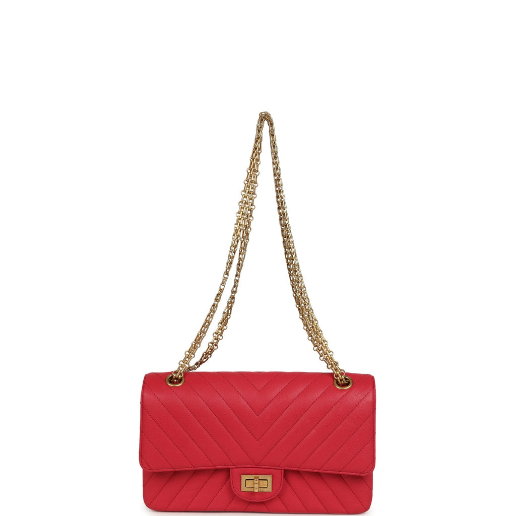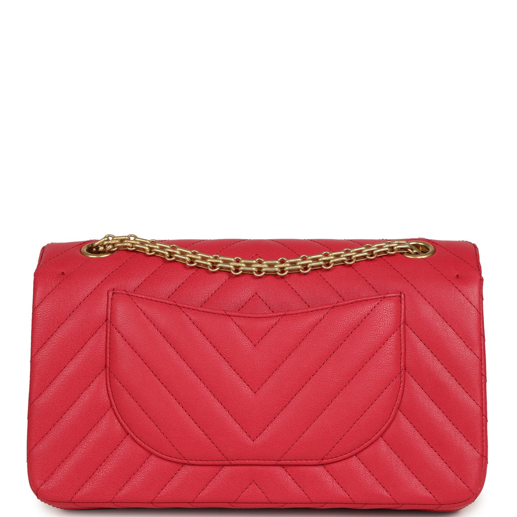 Chanel Small Reissue 225 2.55 Double Flap Bag Pink Chevron Calfskin Antique Gold Hardware