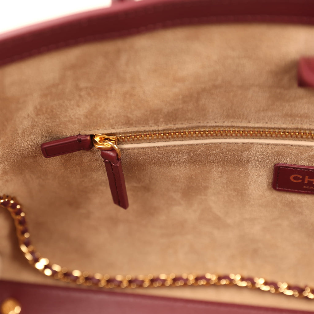 Chanel Small Cerf Shopping Bag Burgundy Calfskin Gold Hardware