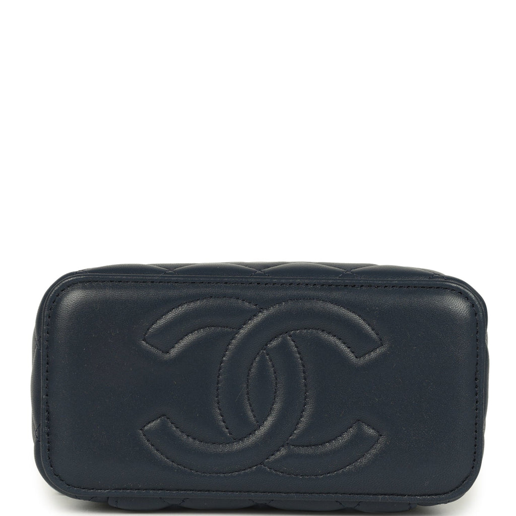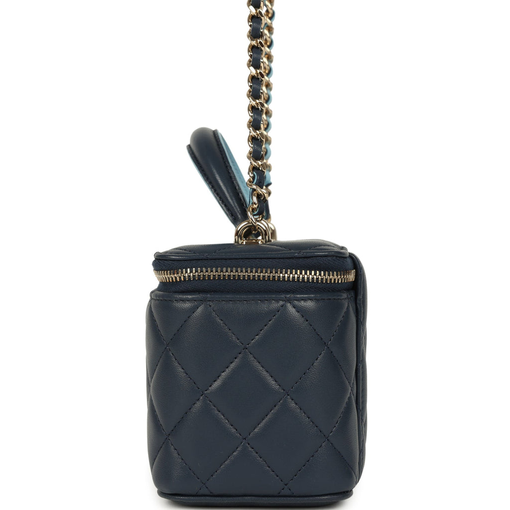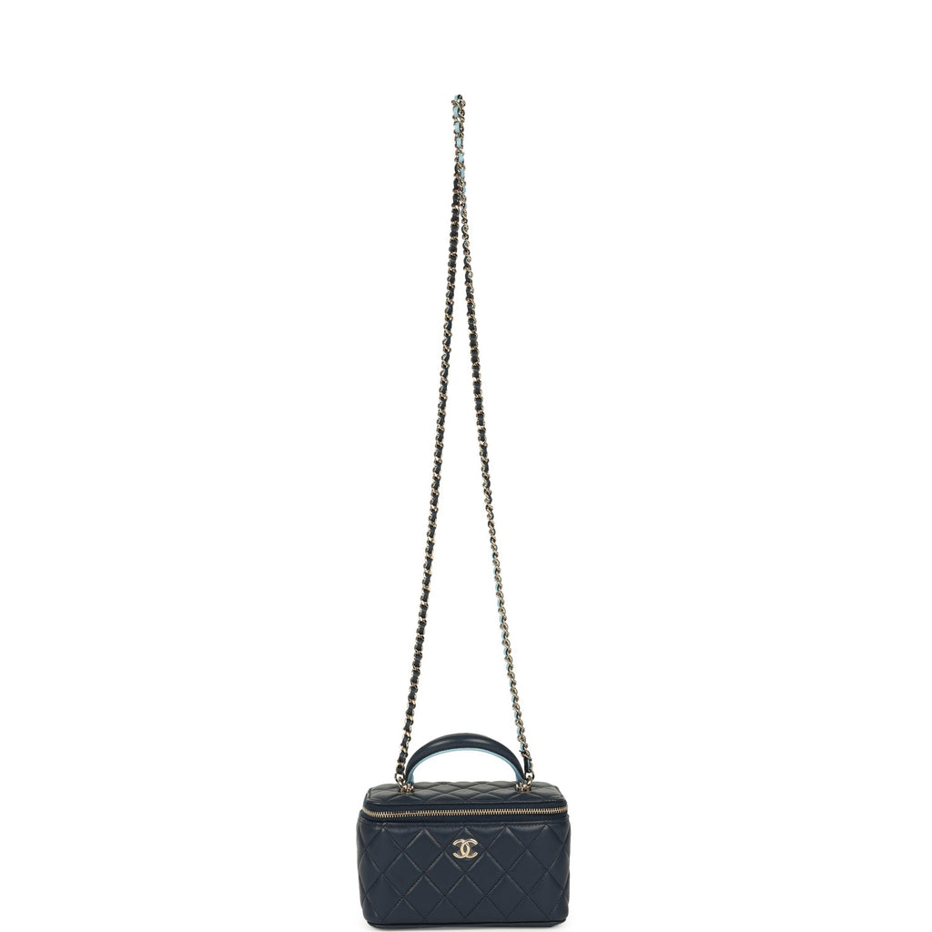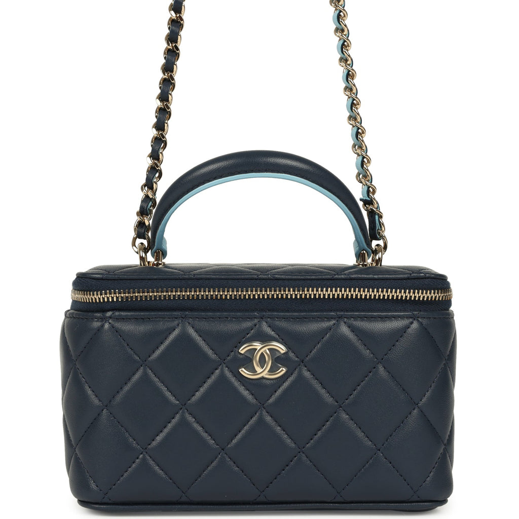 Chanel Small Top Handle Vanity Case Navy & Light Blue Lambskin Light Gold Hardware