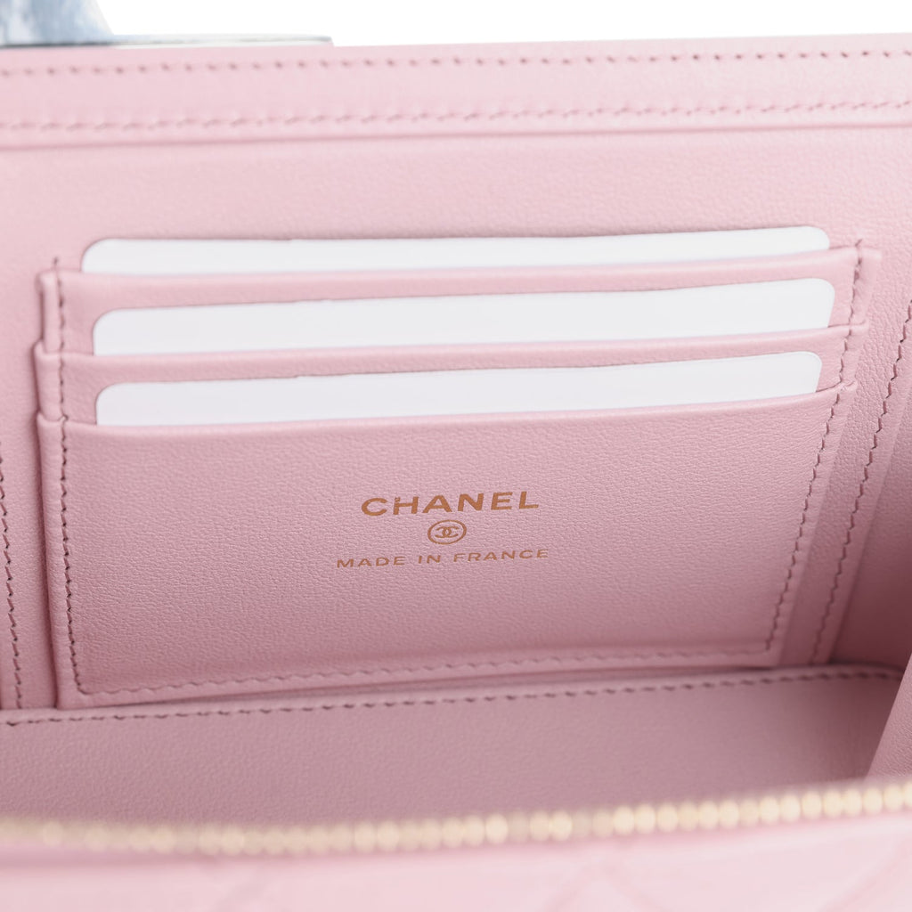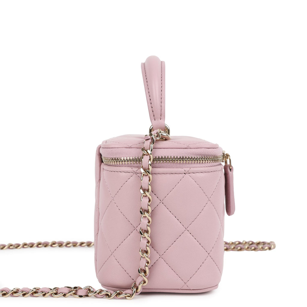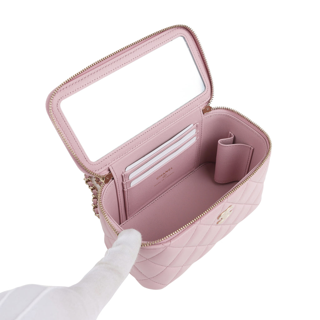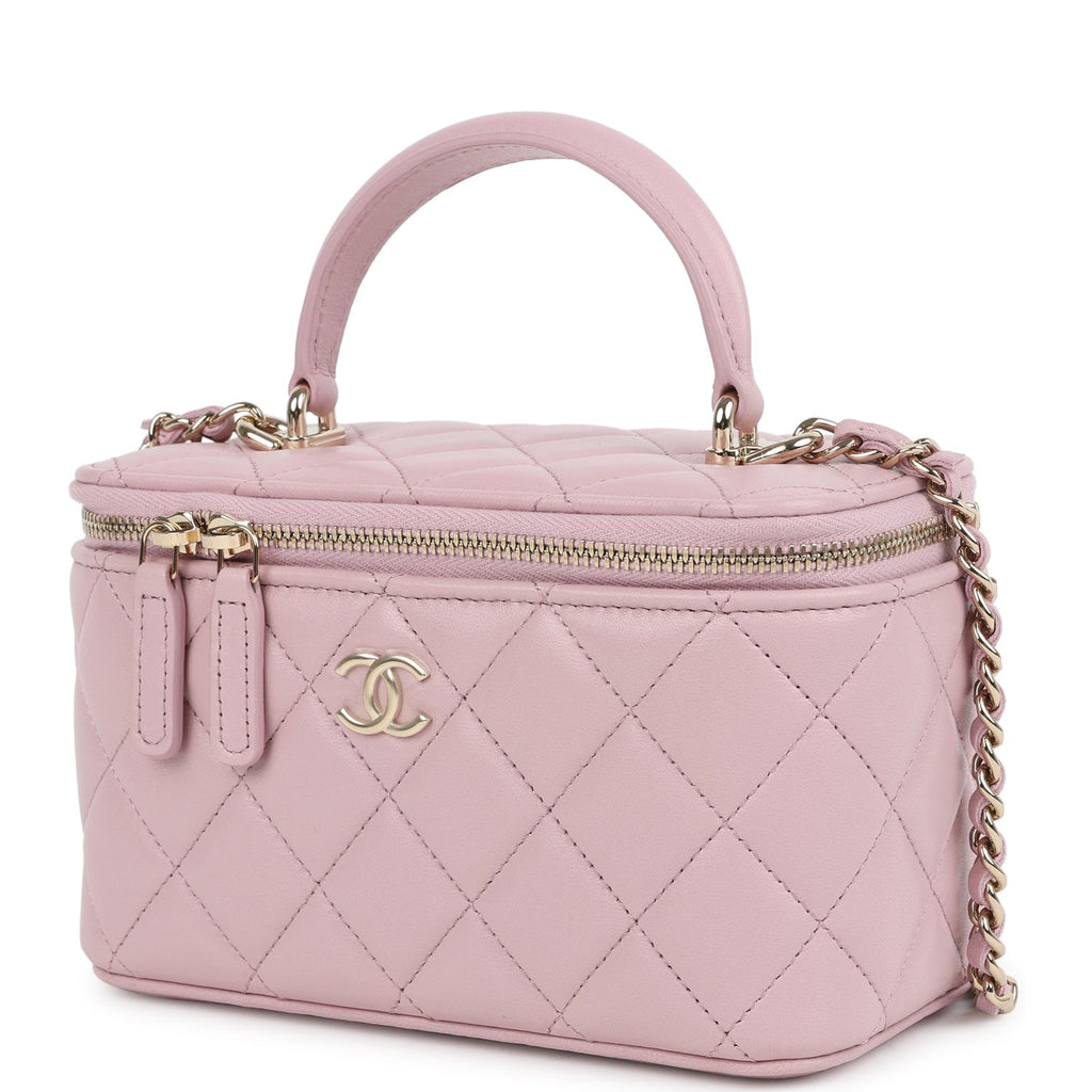 Chanel Small Top Handle Vanity Case Pink Lambskin Light Gold Hardware