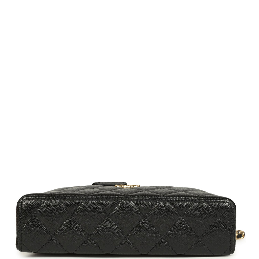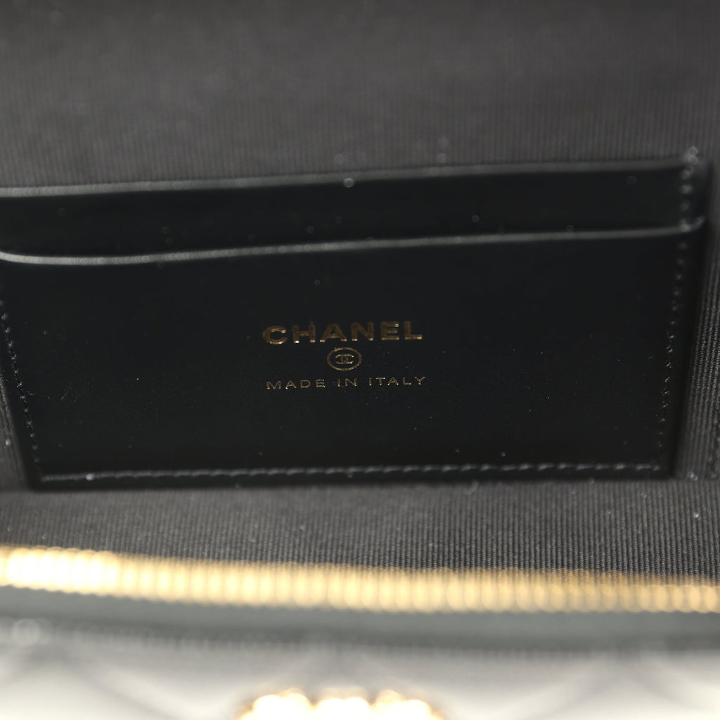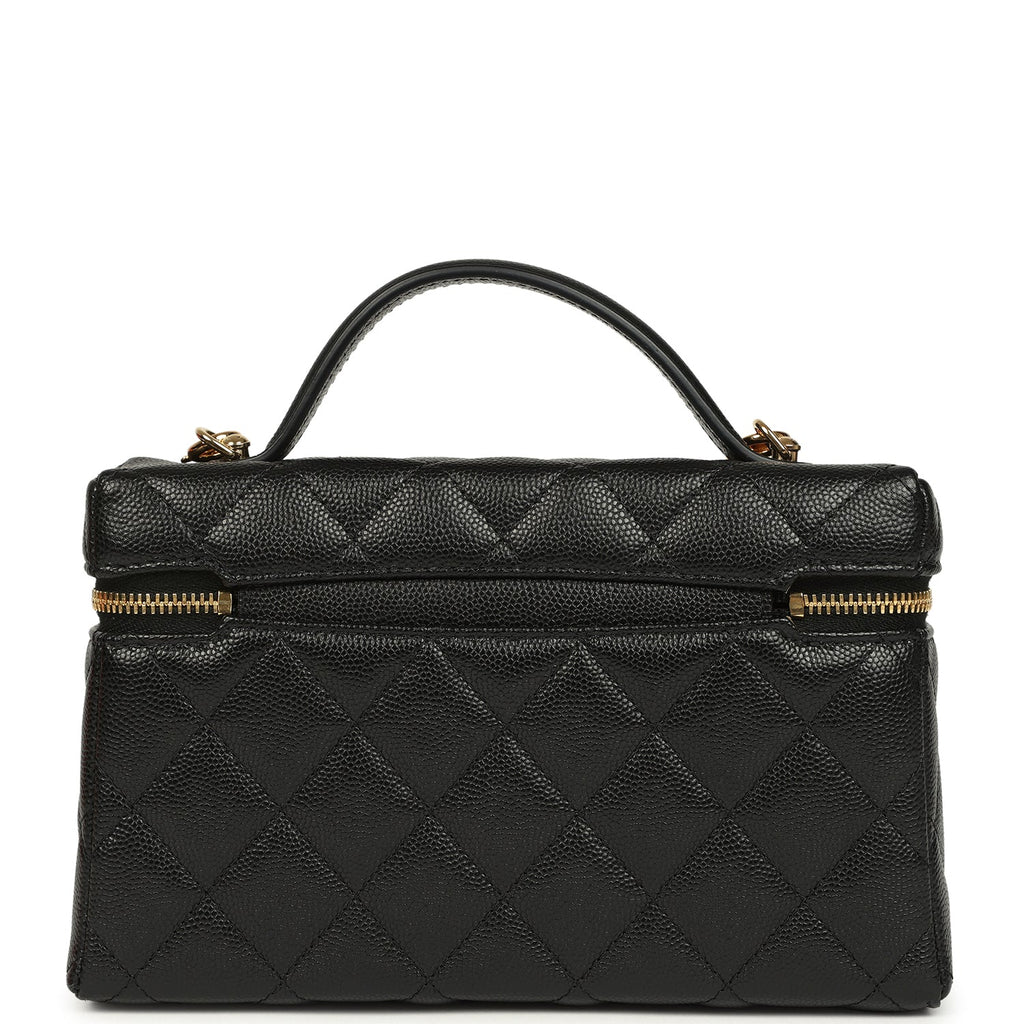 Chanel Top Handle Long Vanity Case with Chain Black Shiny Caviar Gold Hardware