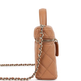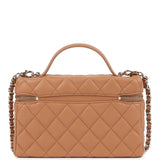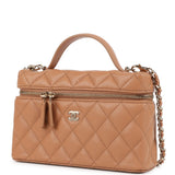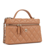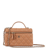 Chanel Top Handle Long Vanity Case with Chain Caramel Shiny Caviar Light Gold Hardware