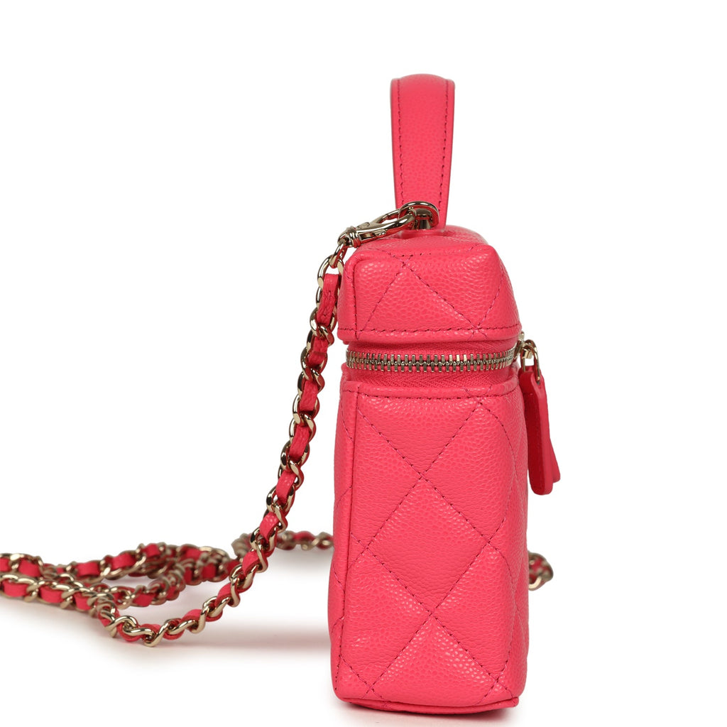 Chanel Top Handle Long Vanity Case with Chain Fuchsia Shiny Caviar Light Gold Hardware