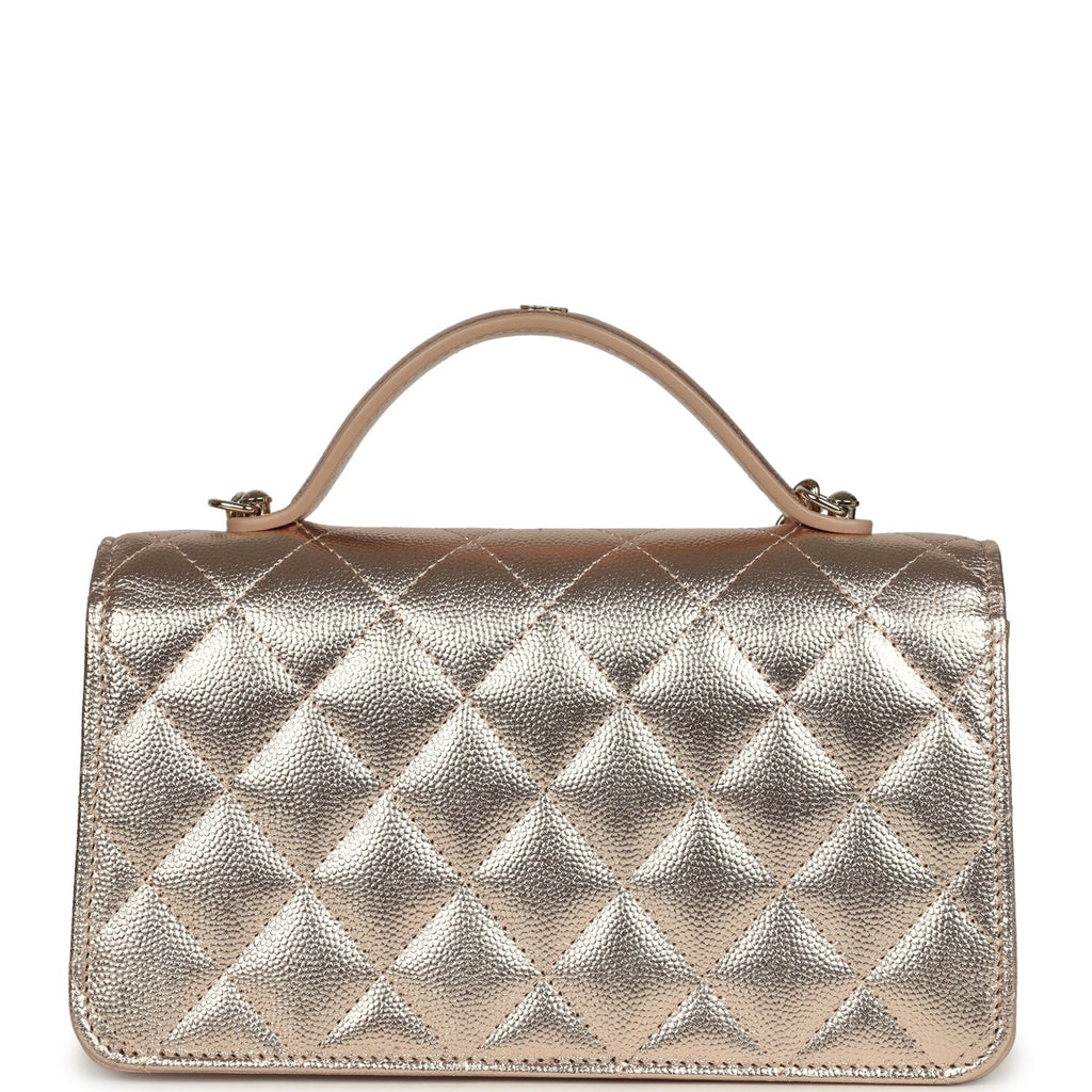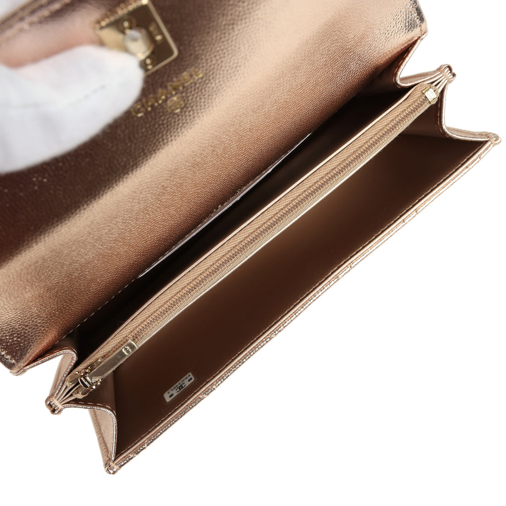 Chanel Top Handle Wallet On Chain WOC Metallic Copper Shiny Caviar Light Gold Hardware