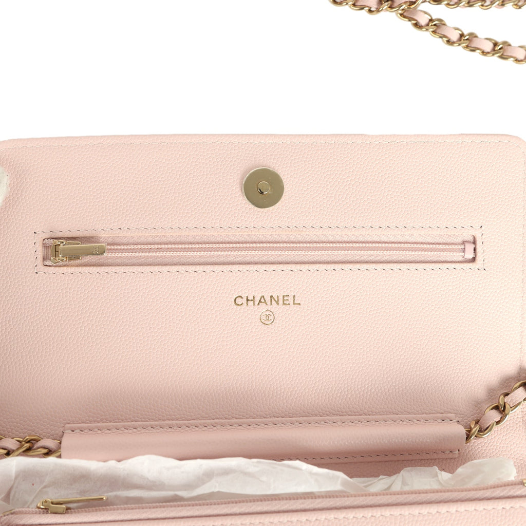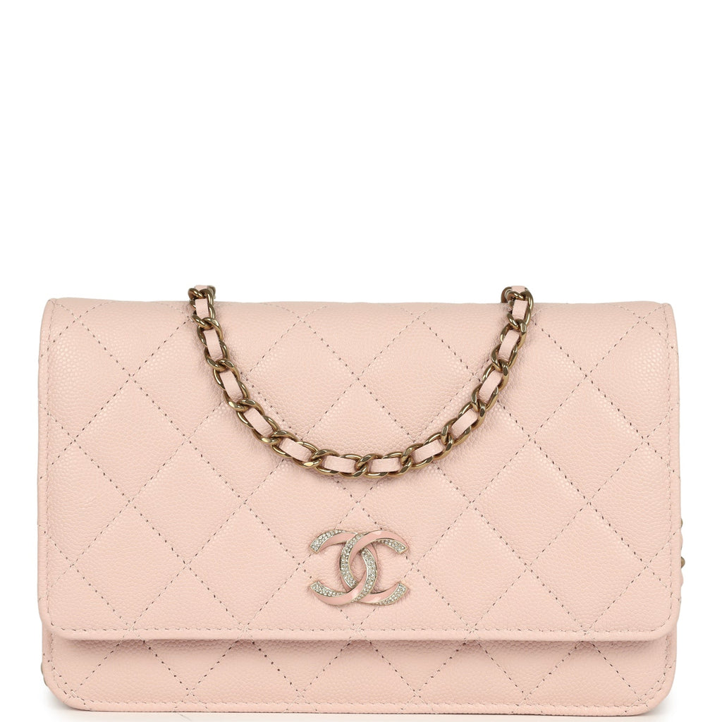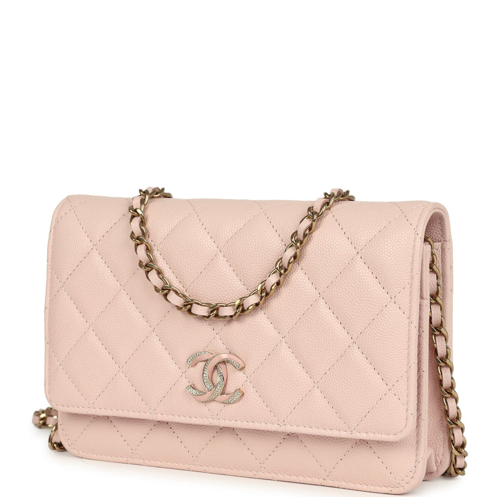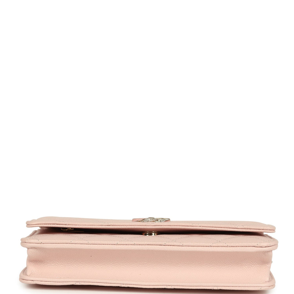 Chanel Wallet On Chain WOC Light Pink Caviar Crystal Light Gold Hardware
