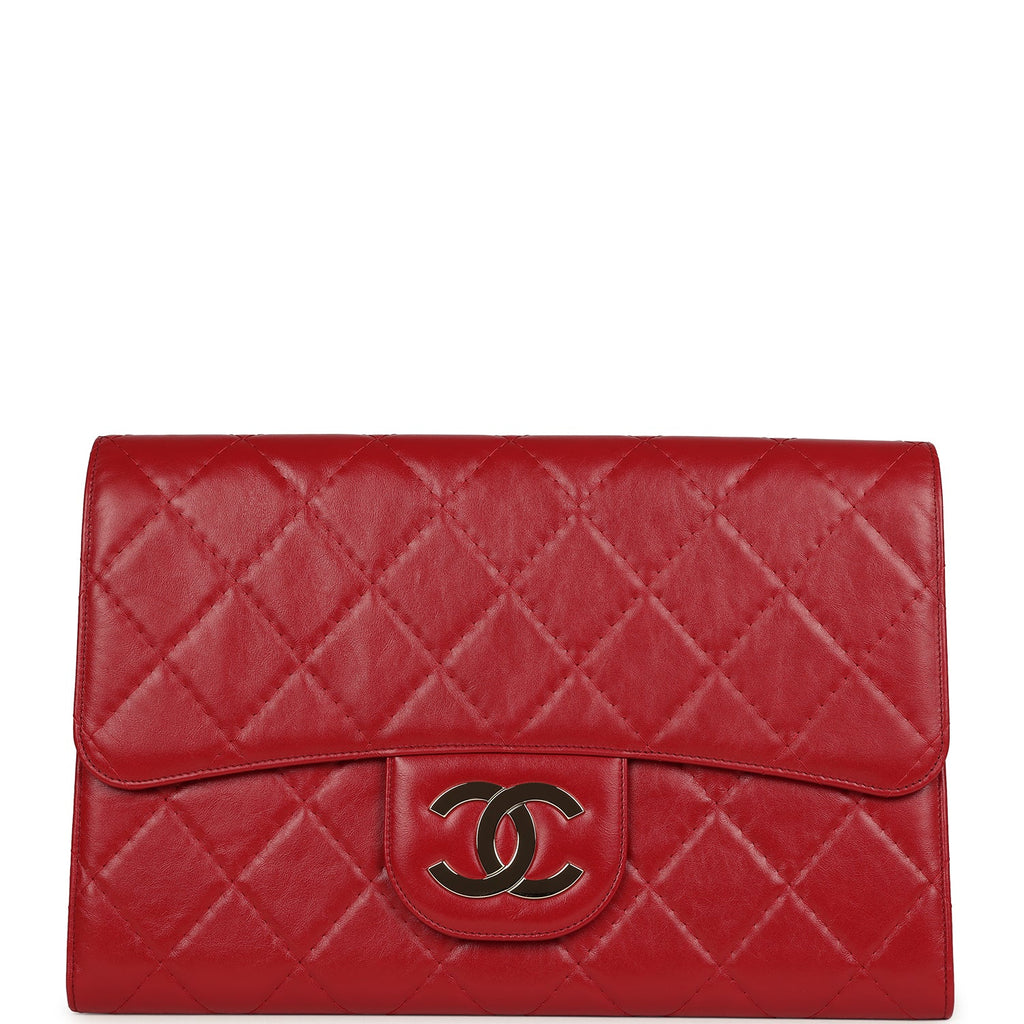 Chanel XXL CC Clutch Red Shiny Crumpled Calfskin Gold Hardware
