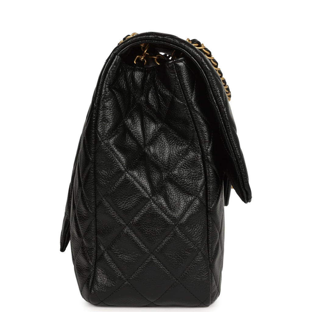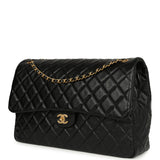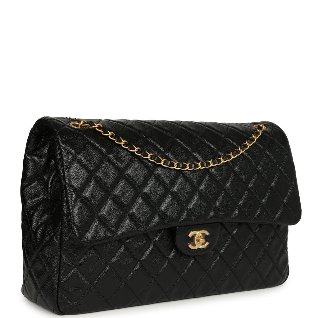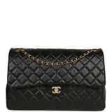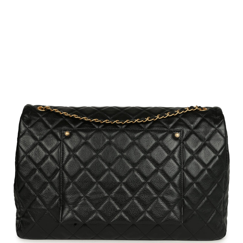 Chanel XXL Classic Single Flap Bag Black Shiny Aged Calfskin Brushed Gold Hardware