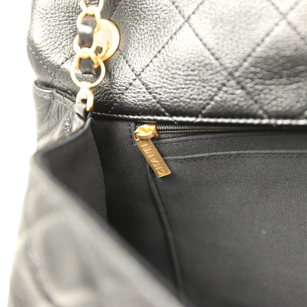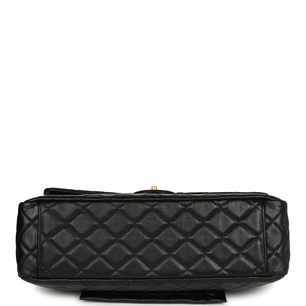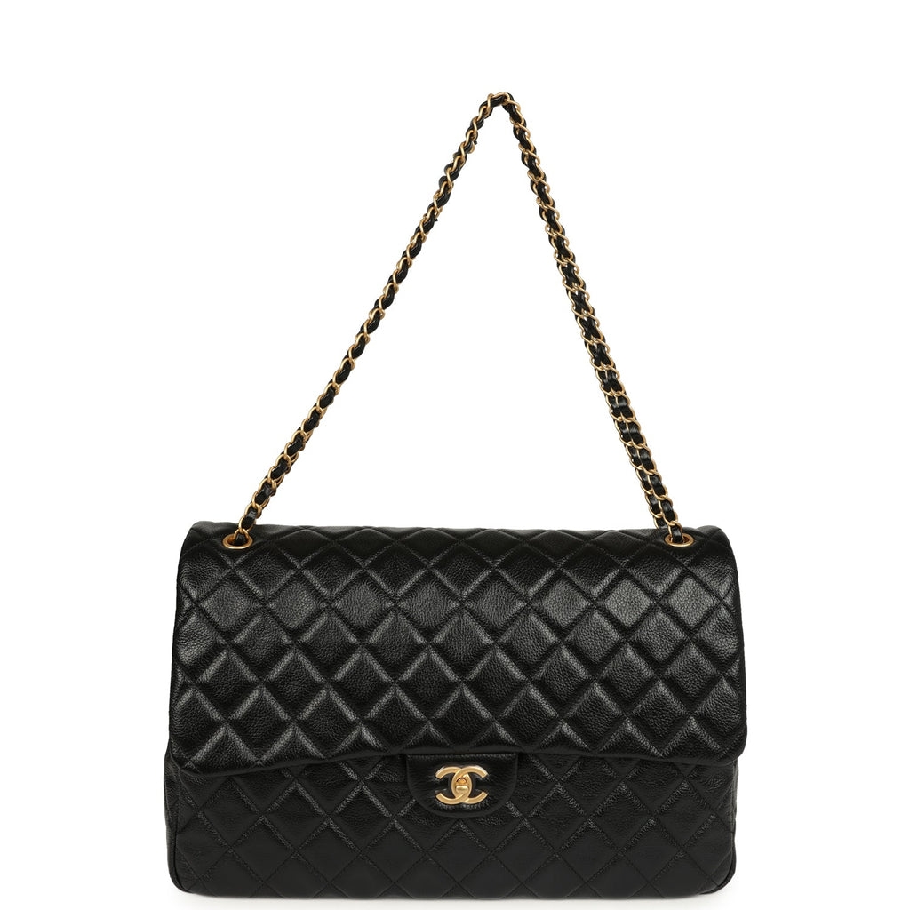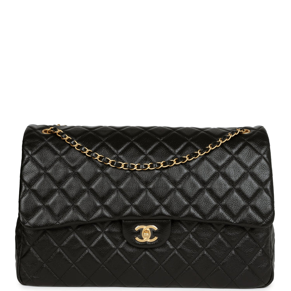Chanel XXL Classic Single Flap Bag Black Shiny Aged Calfskin Brushed Gold Hardware