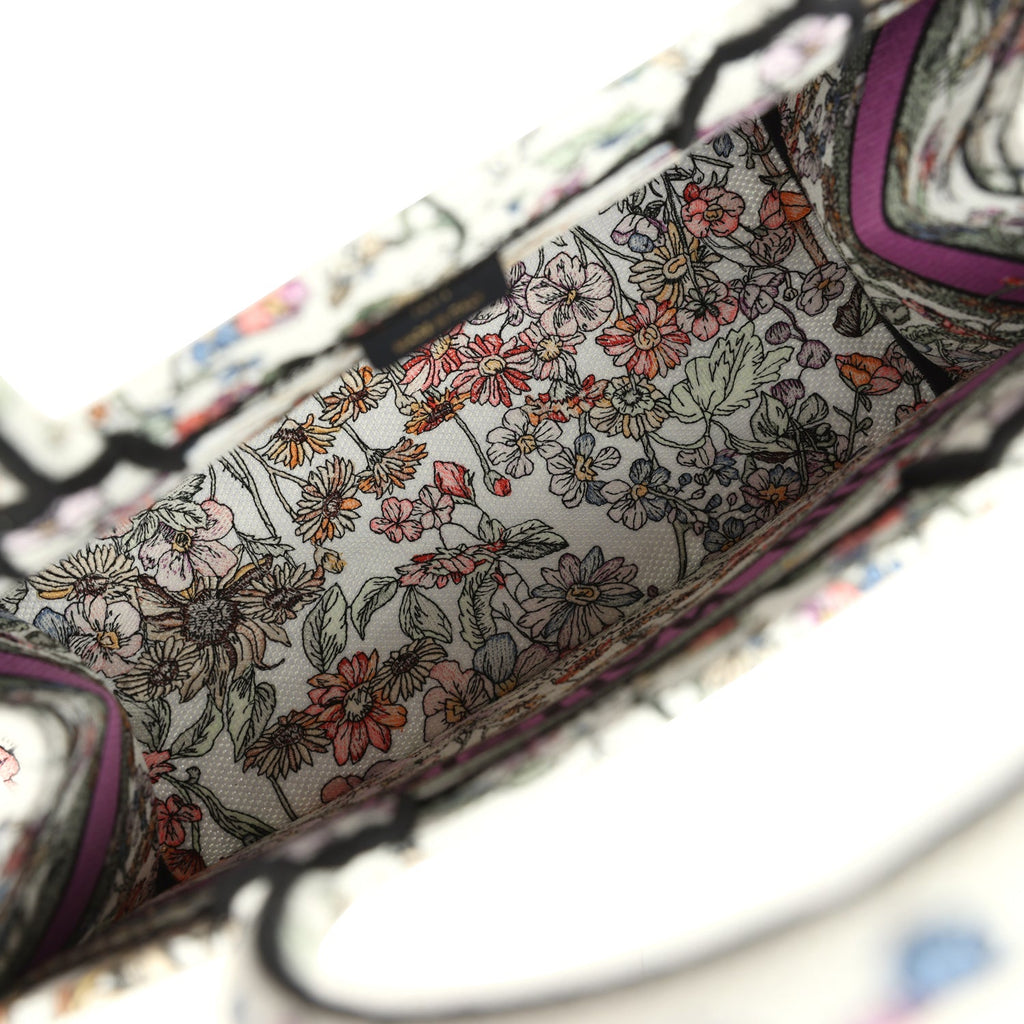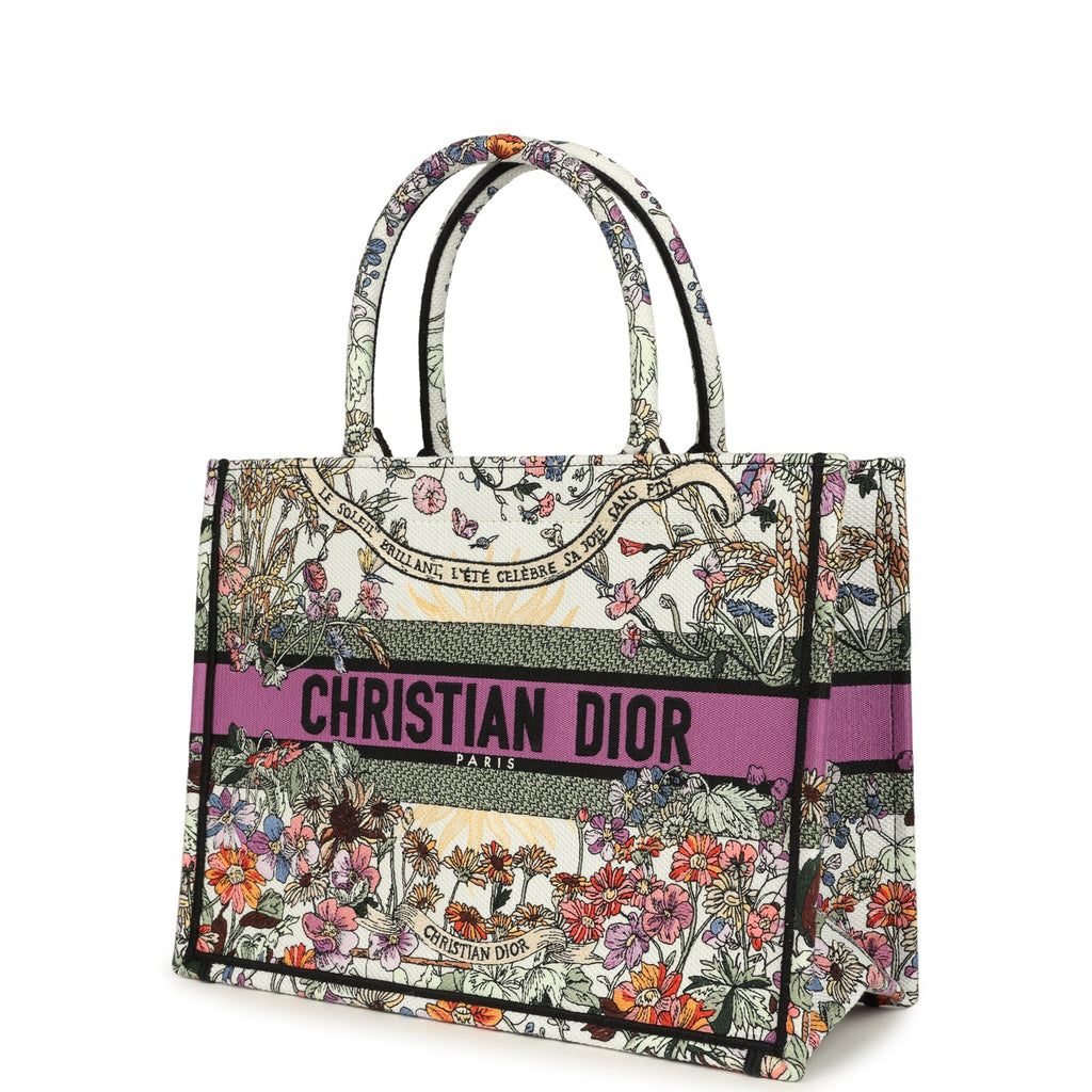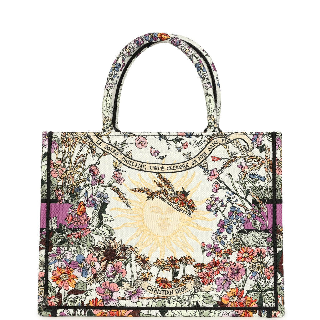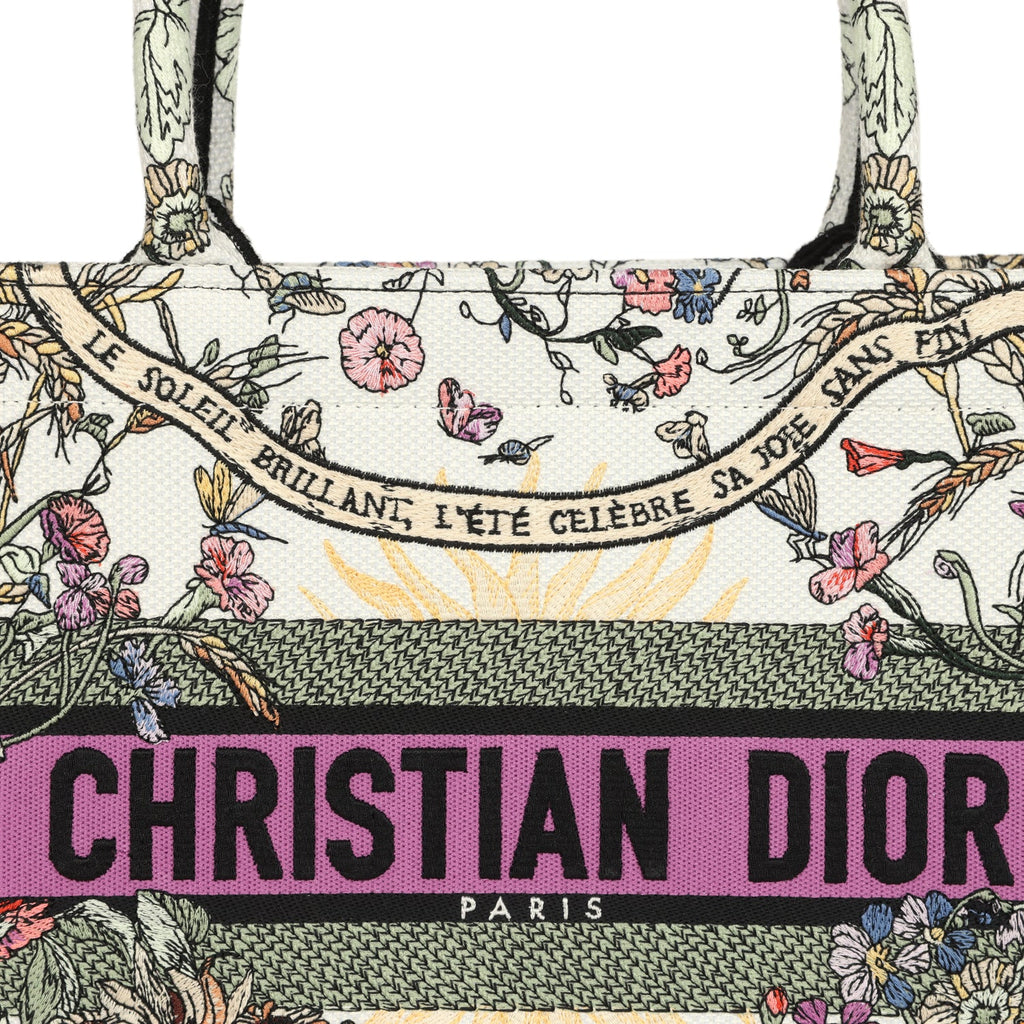 Christian Dior "4 Saisons Eté Soleil" Medium Book Tote White and Purple Multicolor Embroidered Canvas