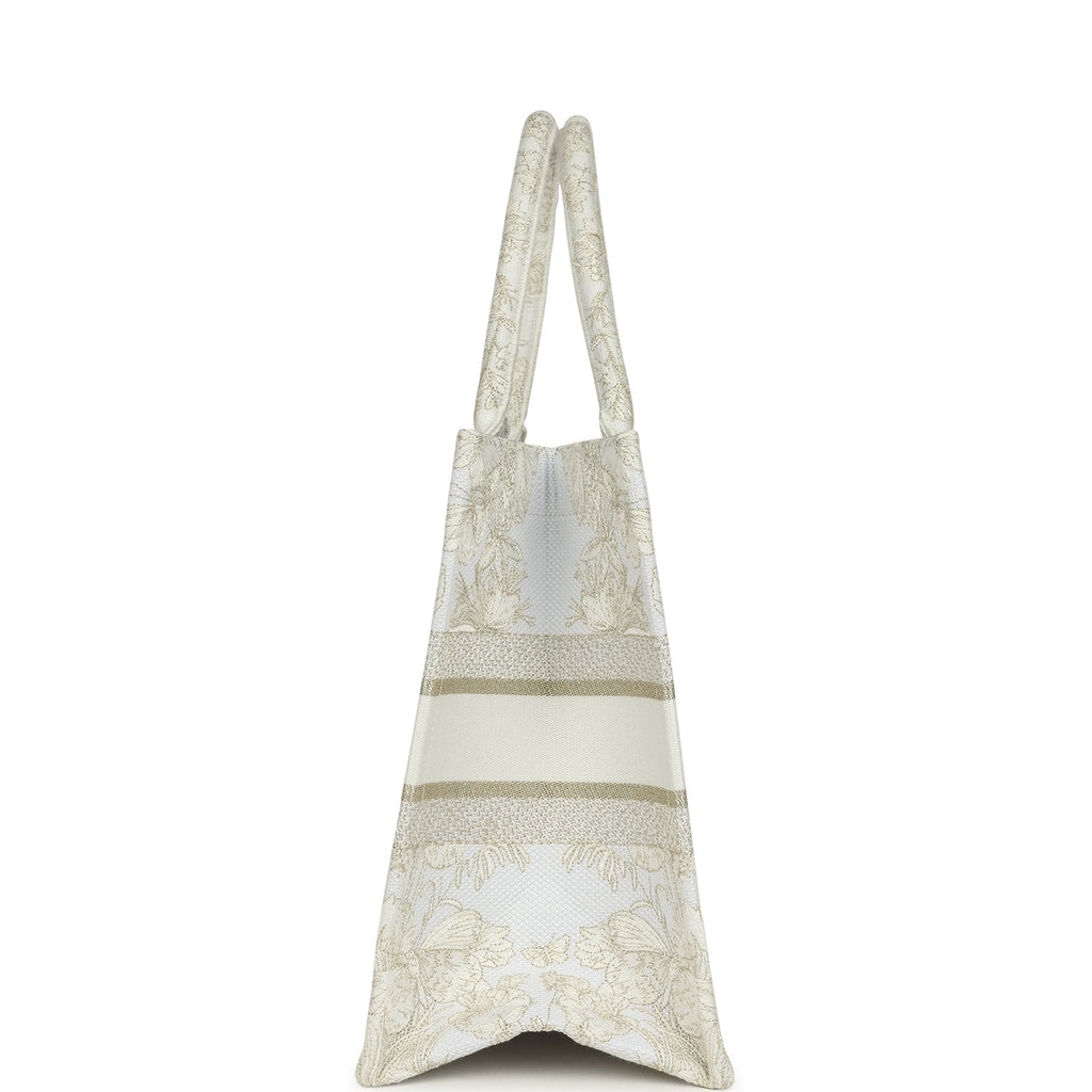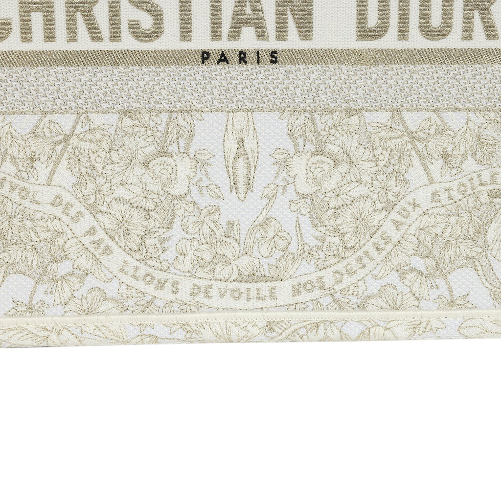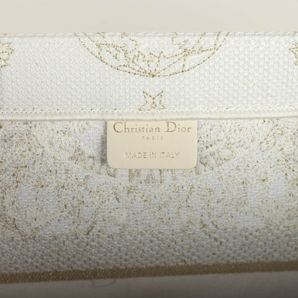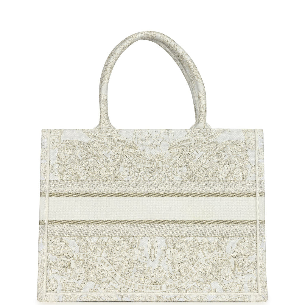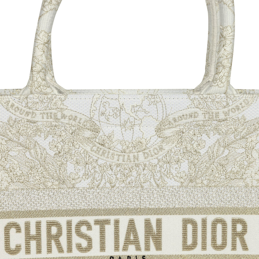 Christian Dior "All Around The World" Medium Book Tote White and Metallic Gold Embroidered Canvas