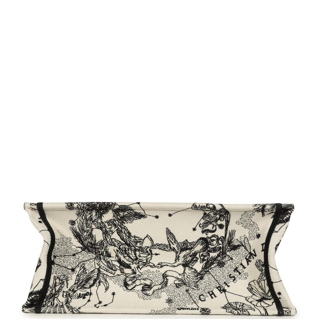 Christian Dior "Zodiac" Medium Book Tote White and Black Embroidered Canvas
