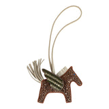 Custom Brown Swarovski Crystal Hermes Bedazzled Pegase Rodeo Bag Charm PM Gold, Craie and Etoupe Milo Lambskin