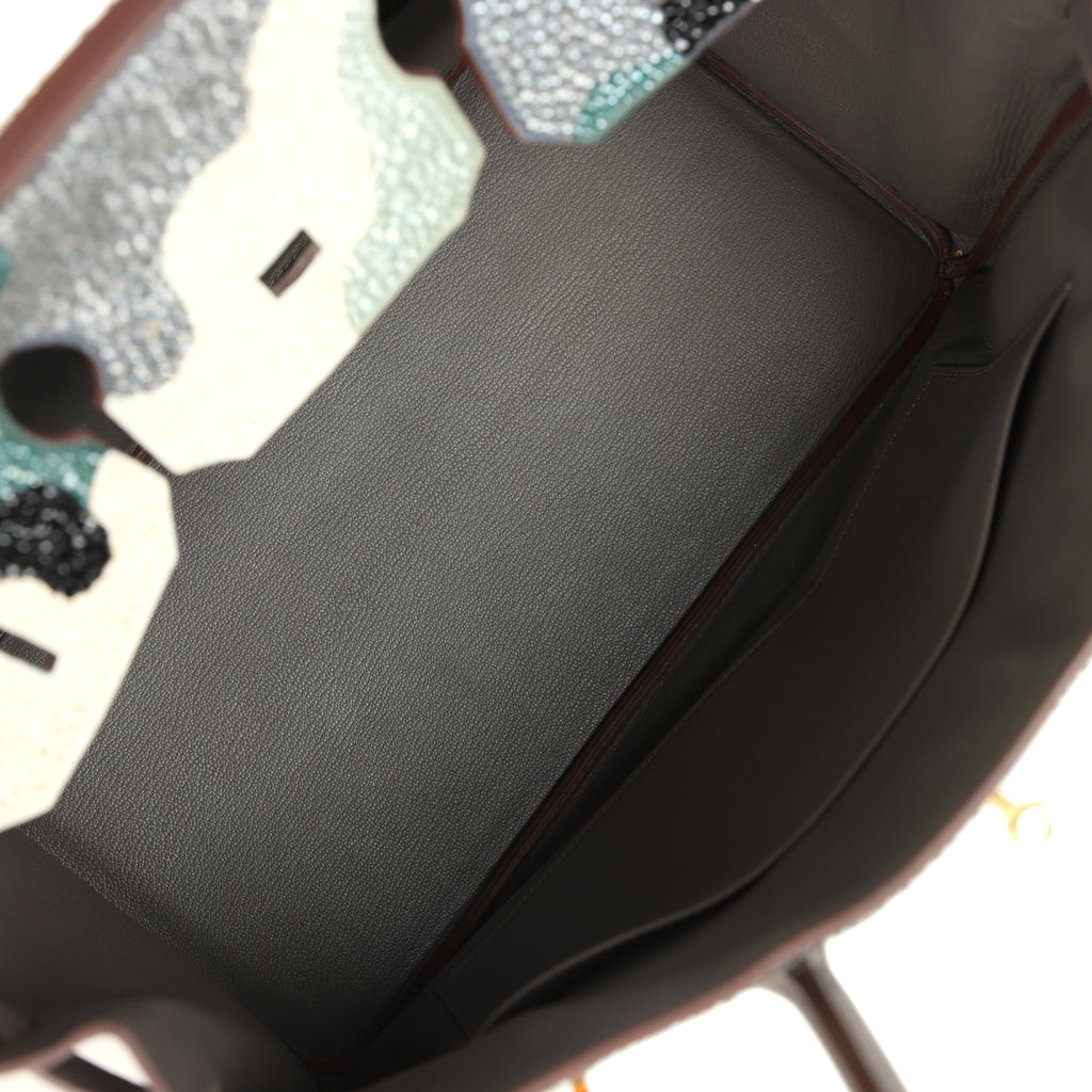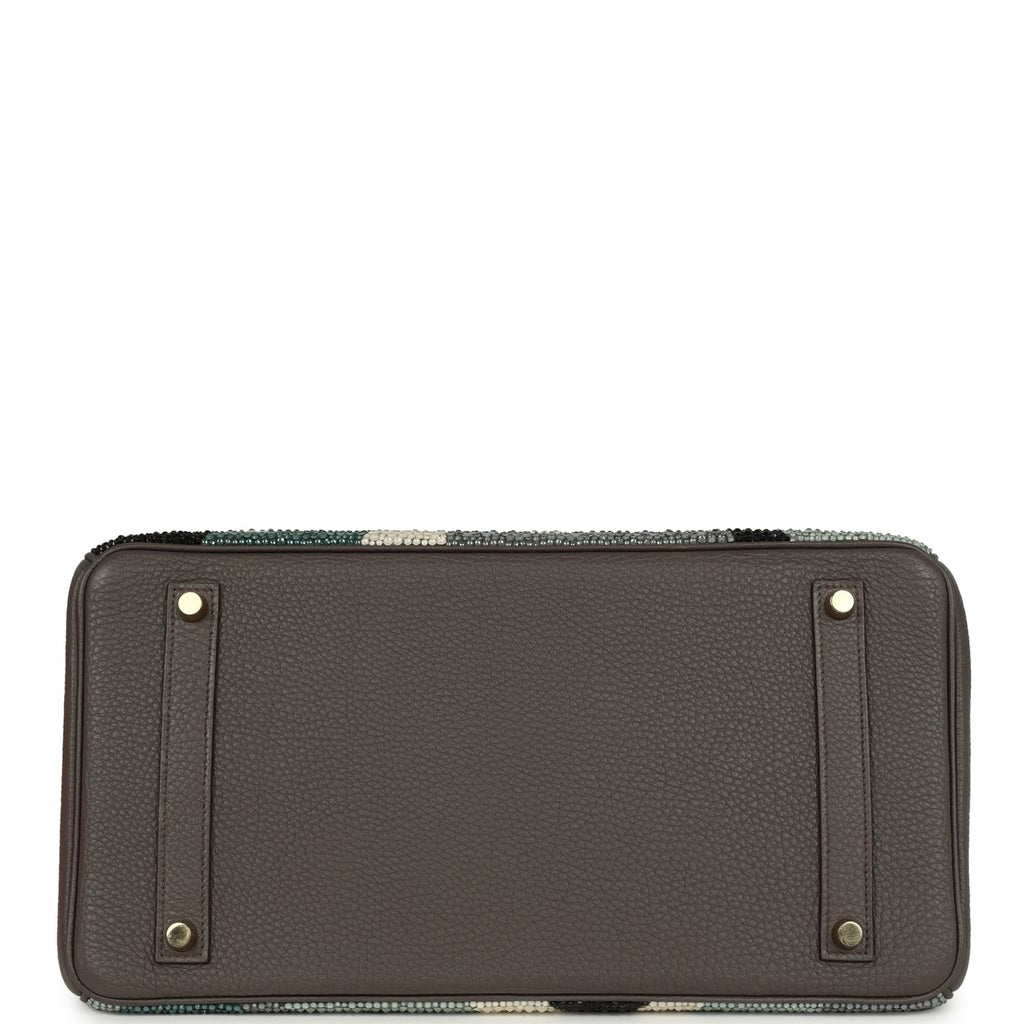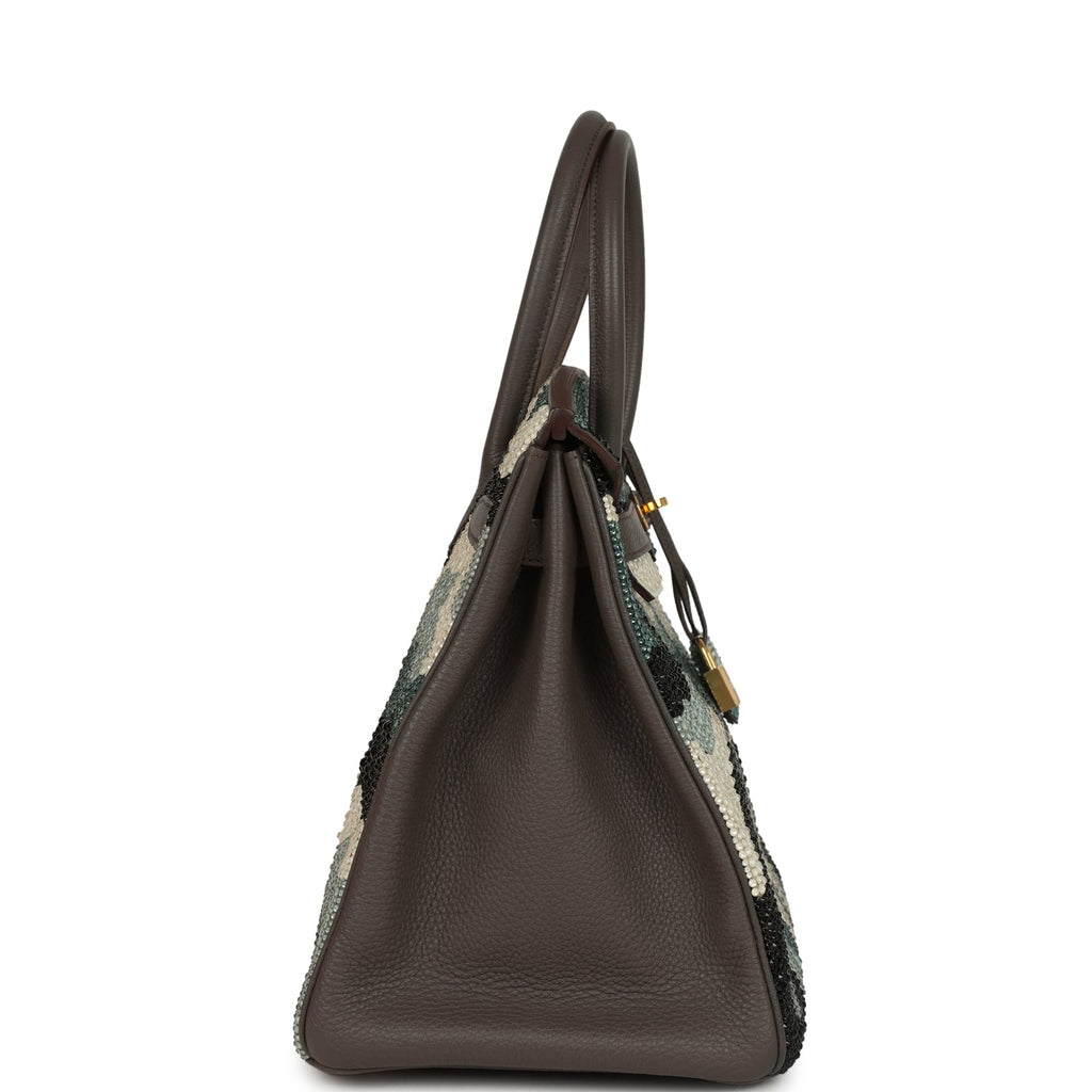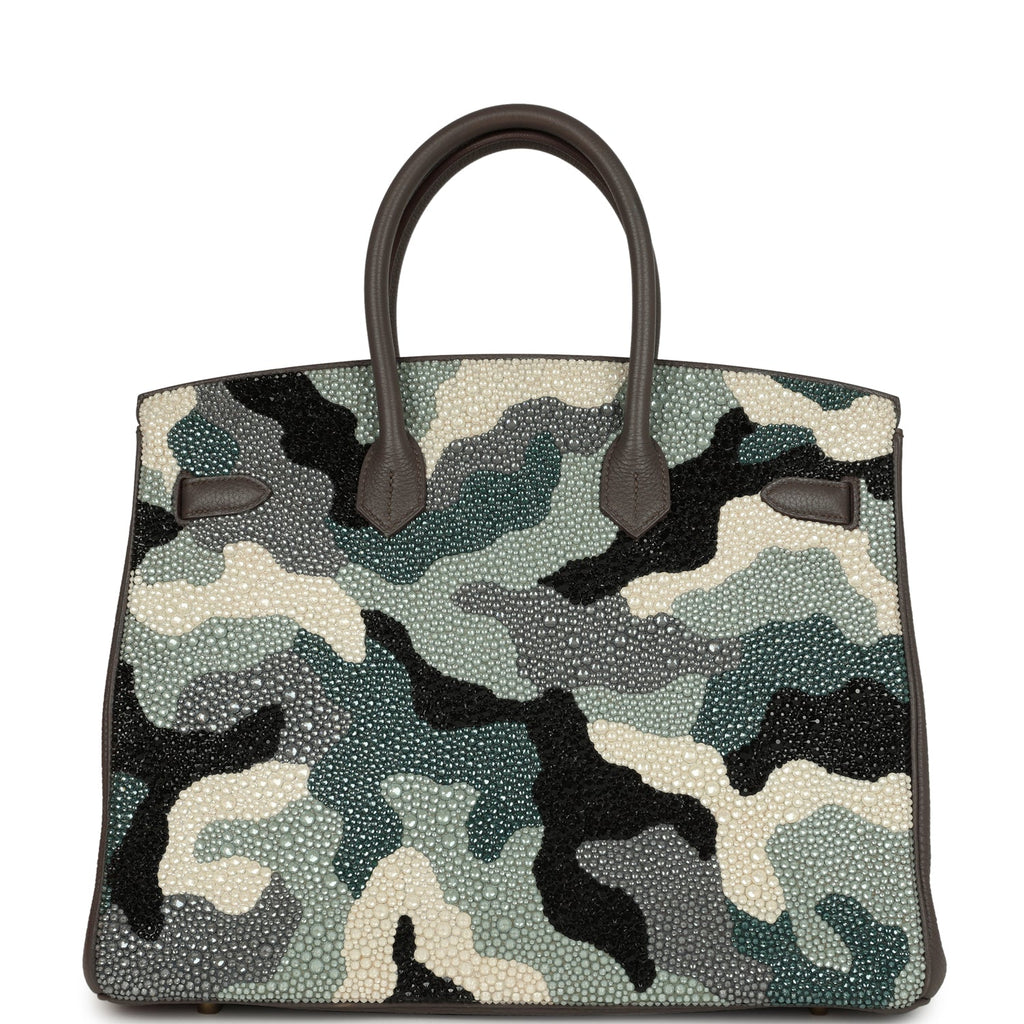 Custom Camouflage Swarovski Crystal Hermes Birkin 35 Etain Togo Gold Hardware