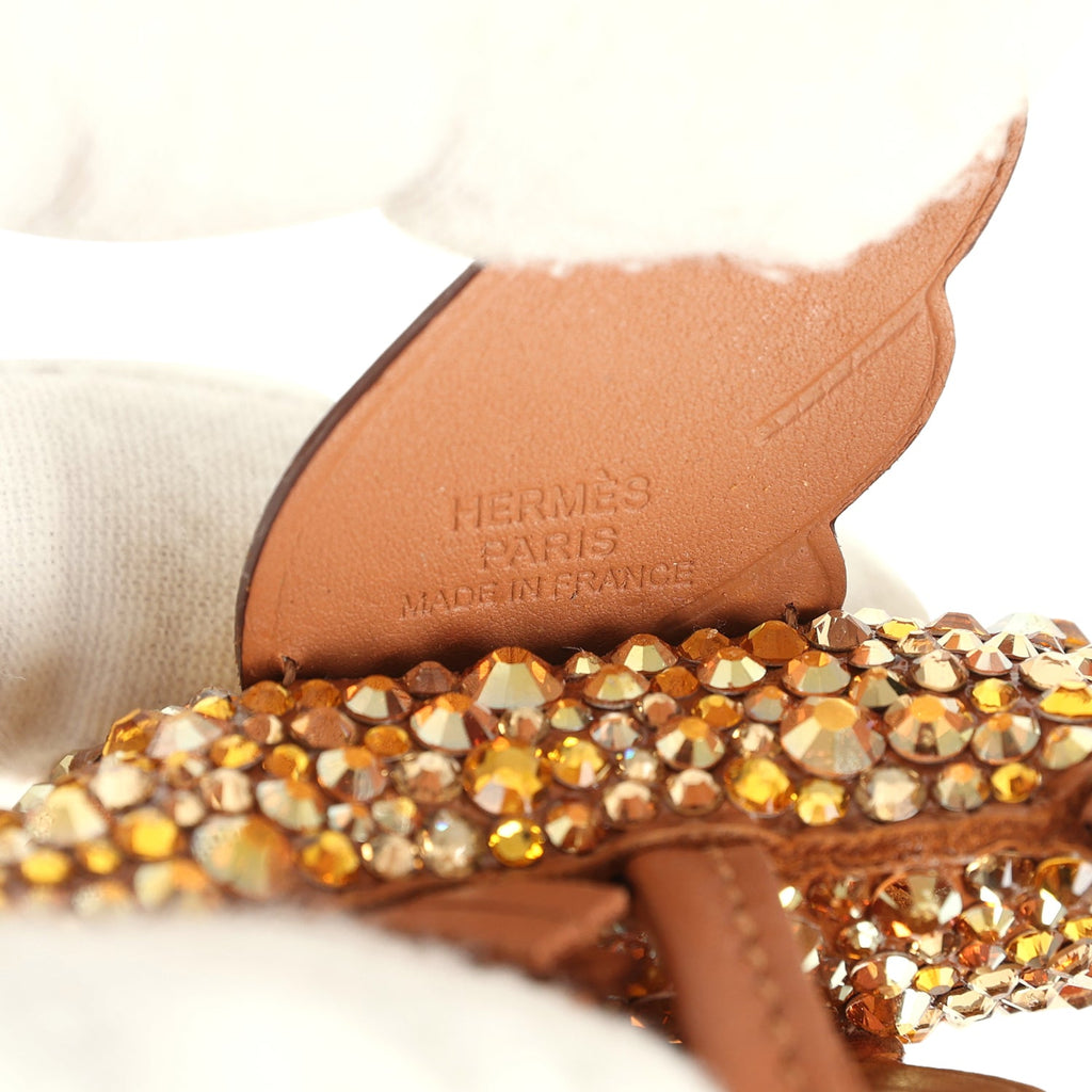Custom Gold Swarovski Crystal Hermes Bedazzled Pegase Rodeo Bag Charm PM Gold Milo Lambskin