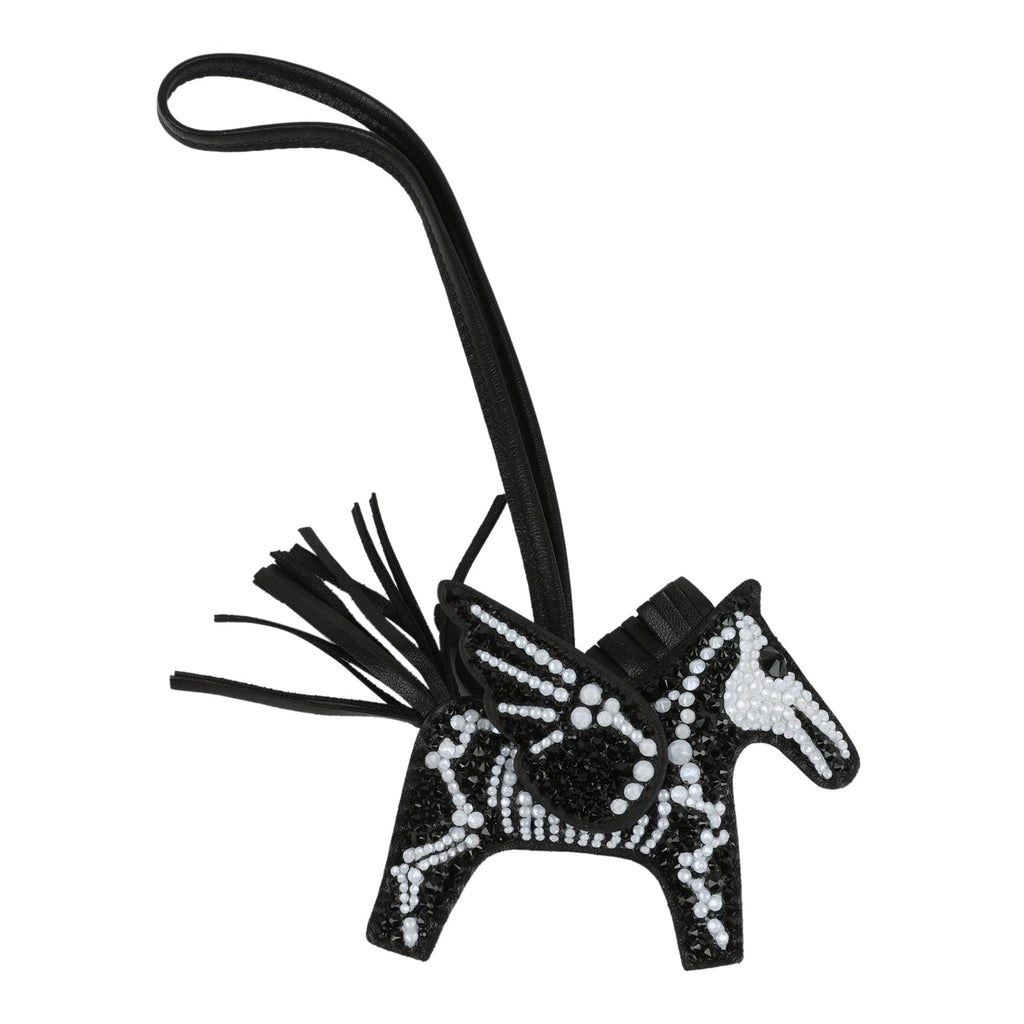 Custom Skeleton Swarovski Crystal Hermes Bedazzled Pegase Rodeo Bag Charm PM So Black Milo Lambskin